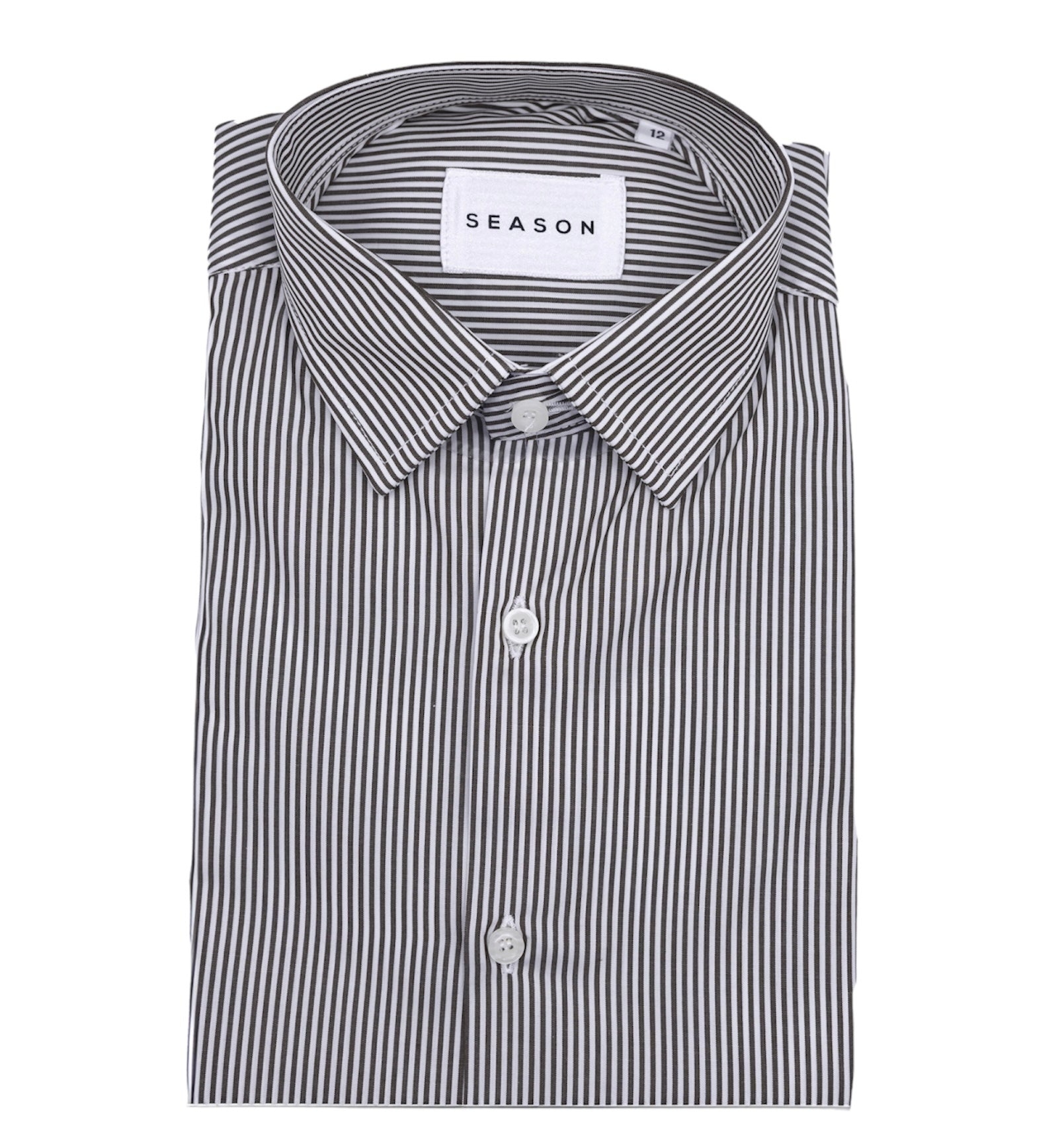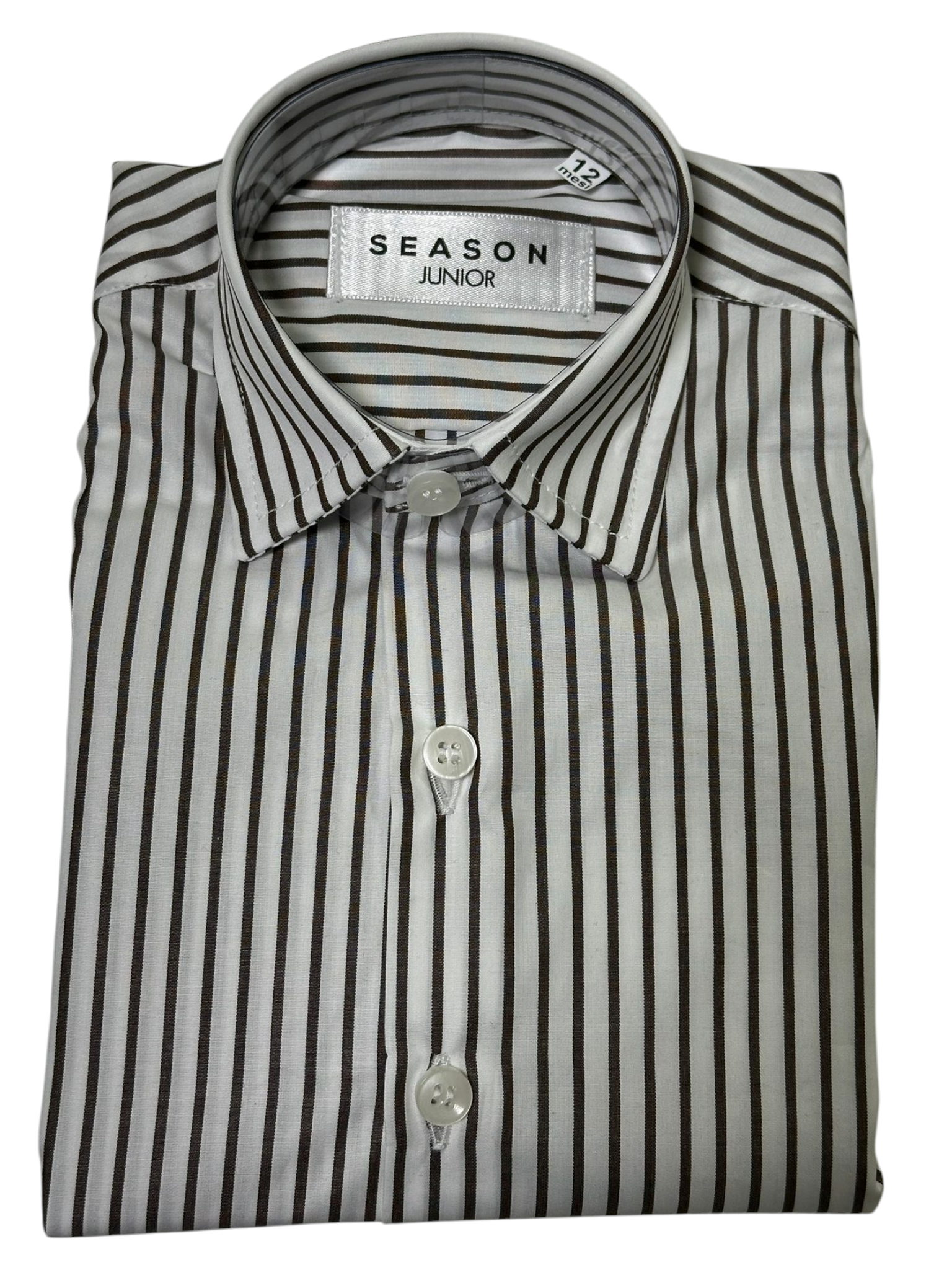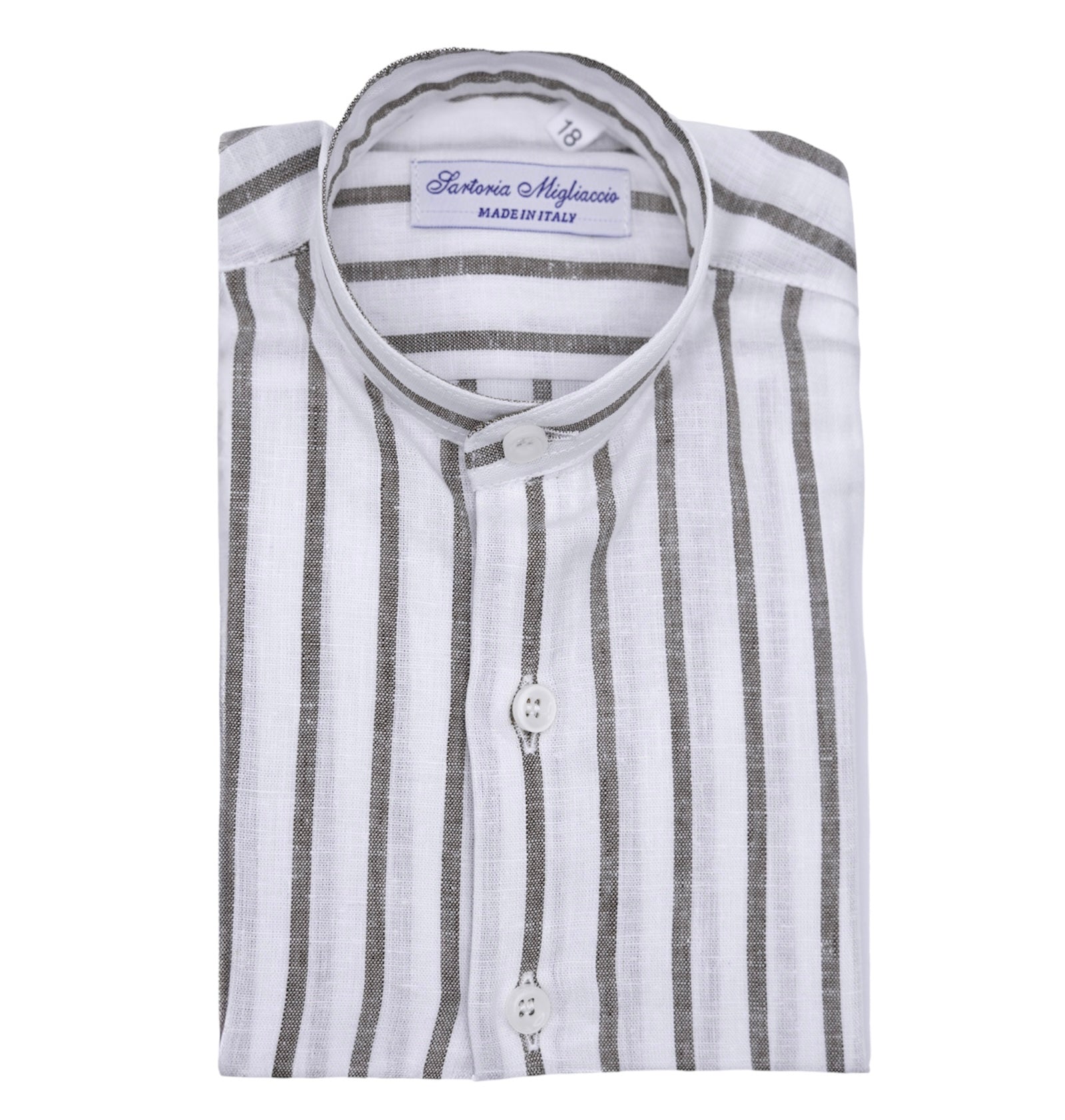 Camicia Lino Neonato Collo Coreano Rigata Tortora 01