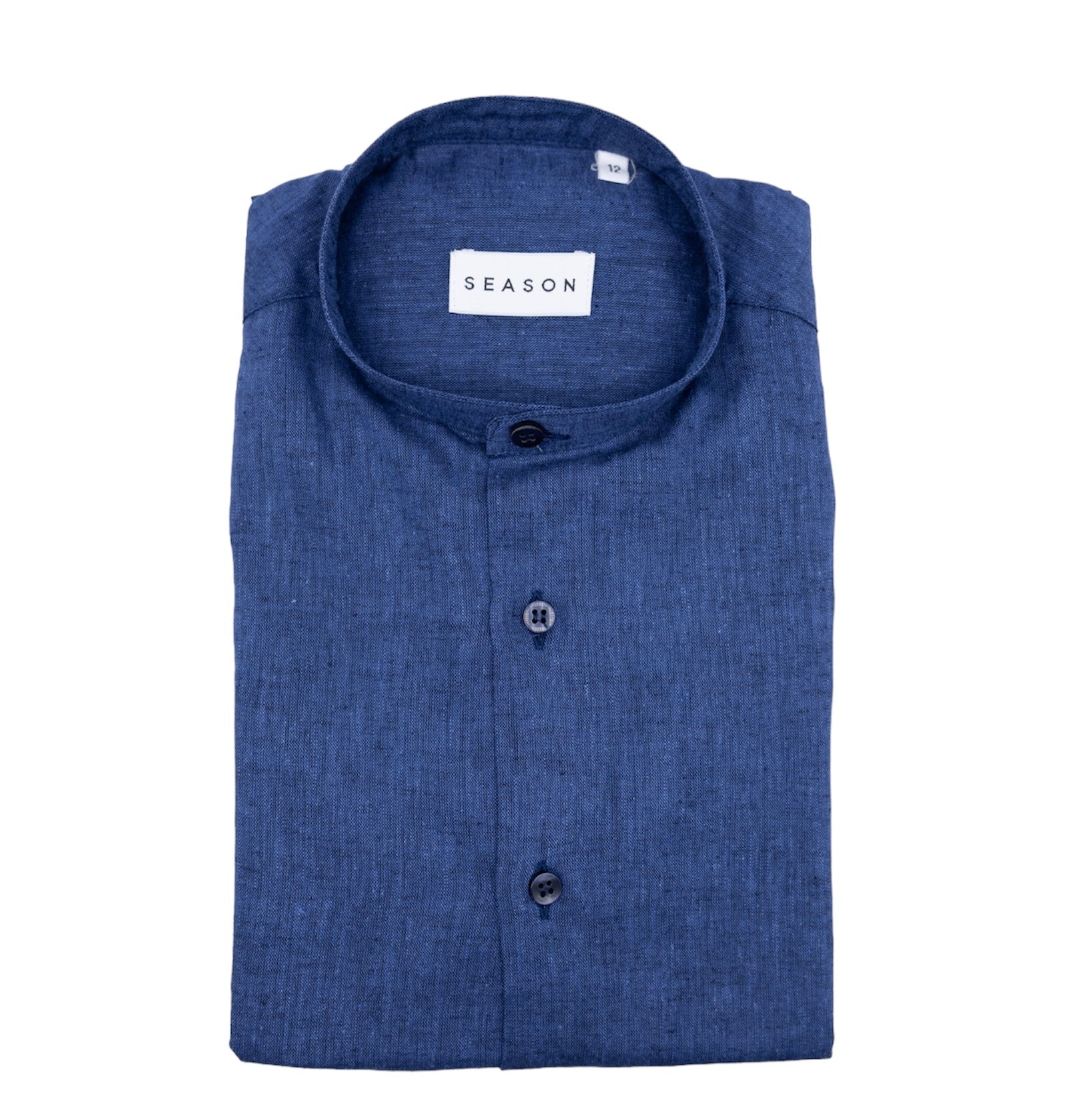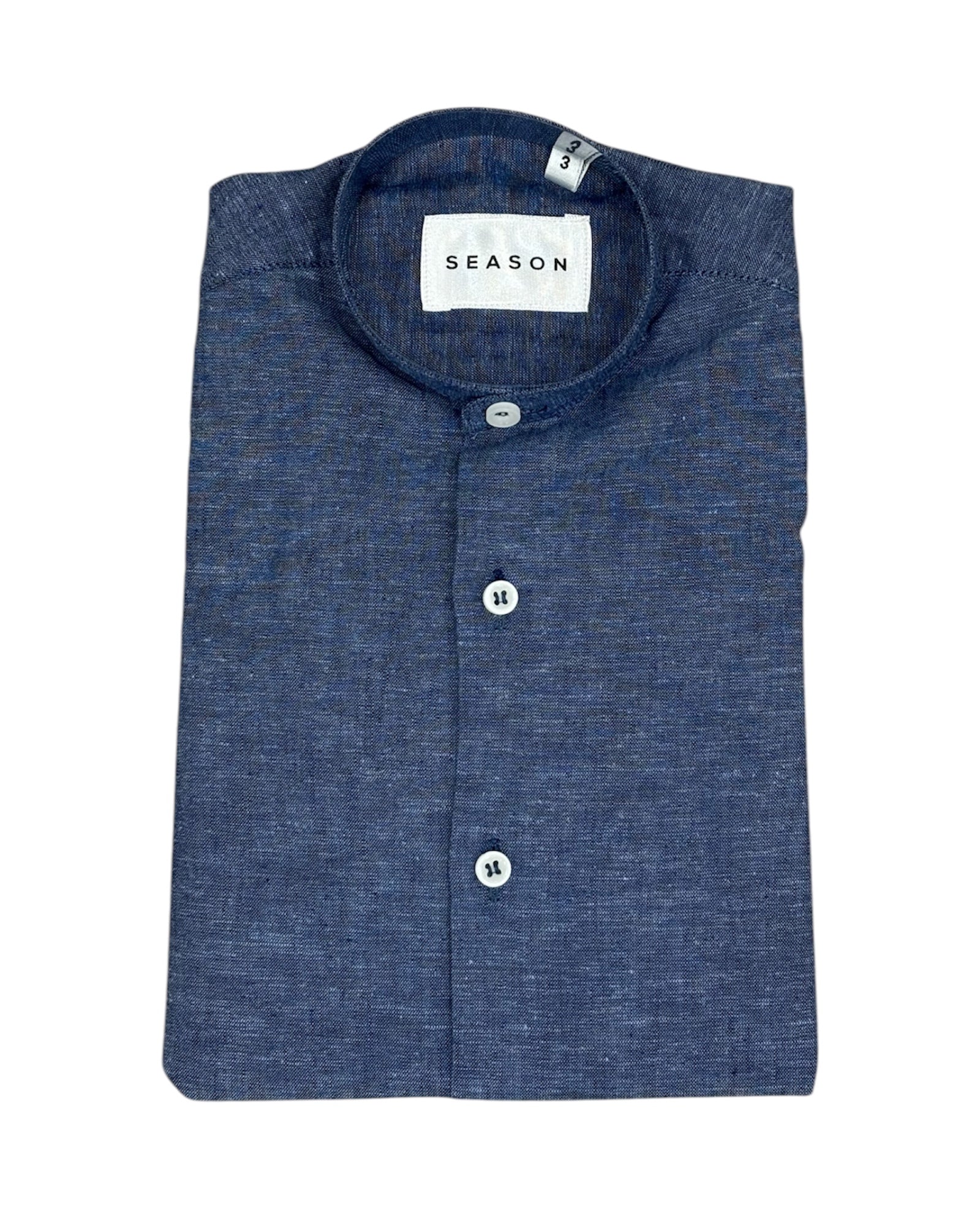 Camicia Lino Neonato Collo Coreano Blu Jeans