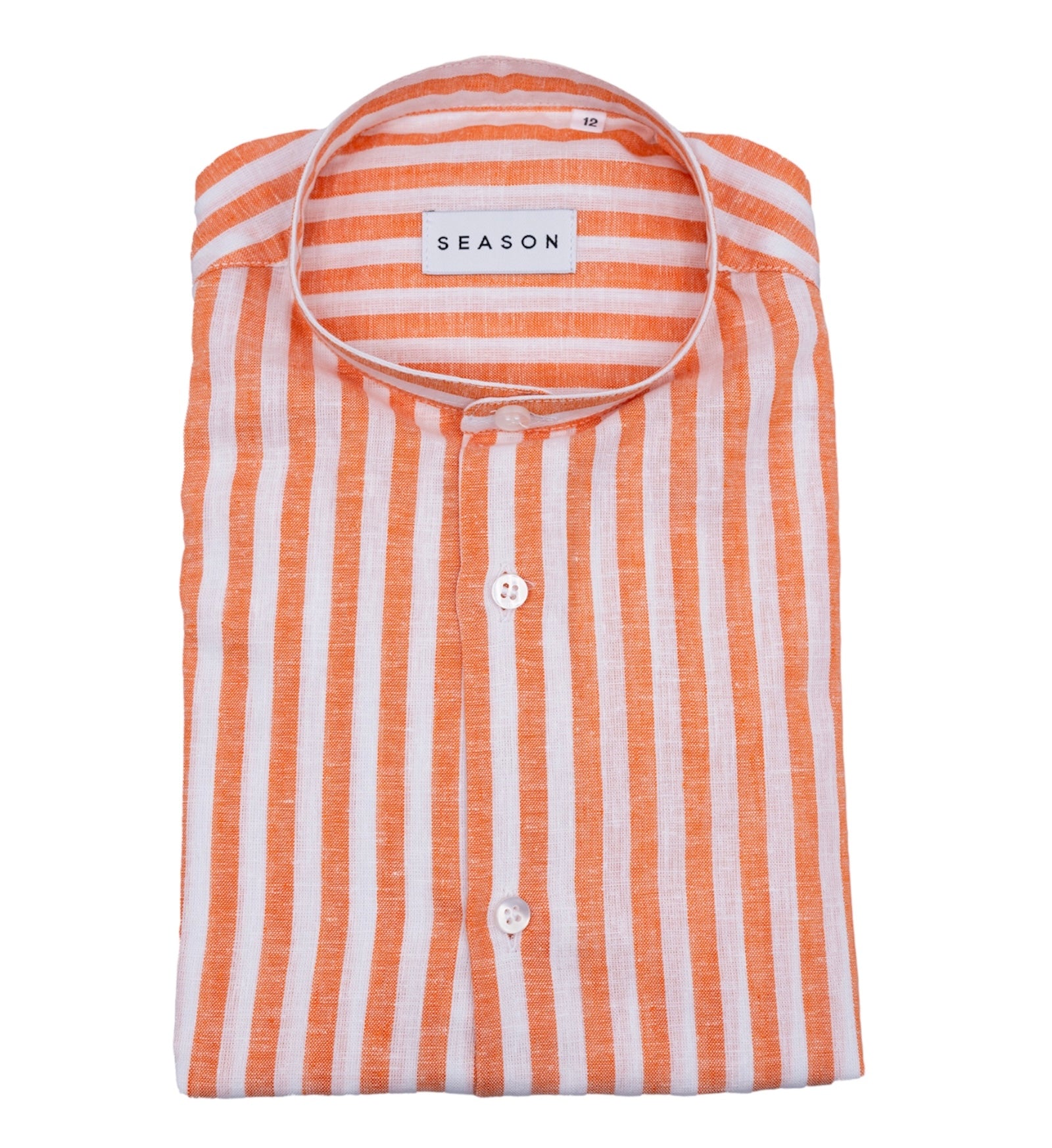 Camicia Lino Neonato Collo Coreano Rigata Arancione