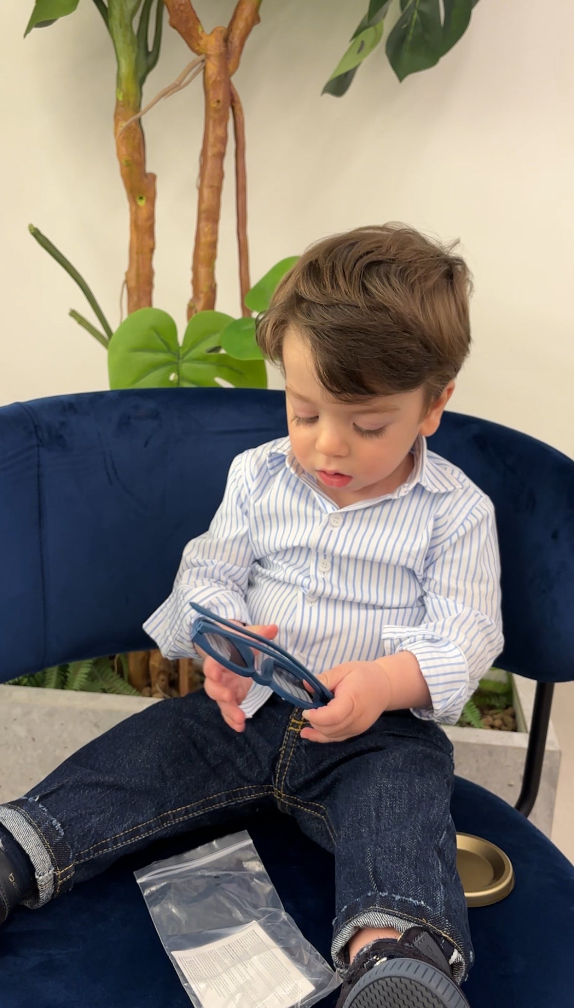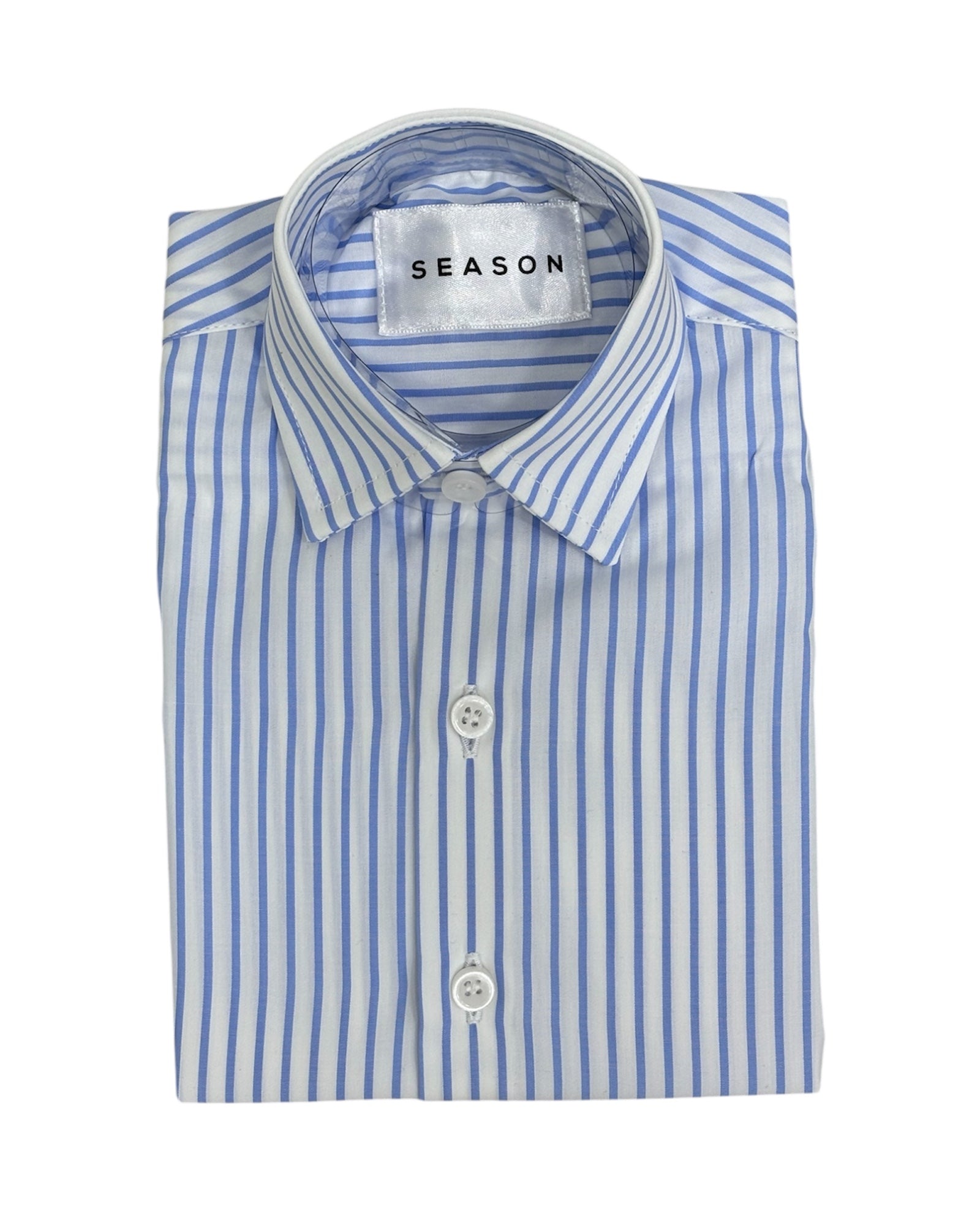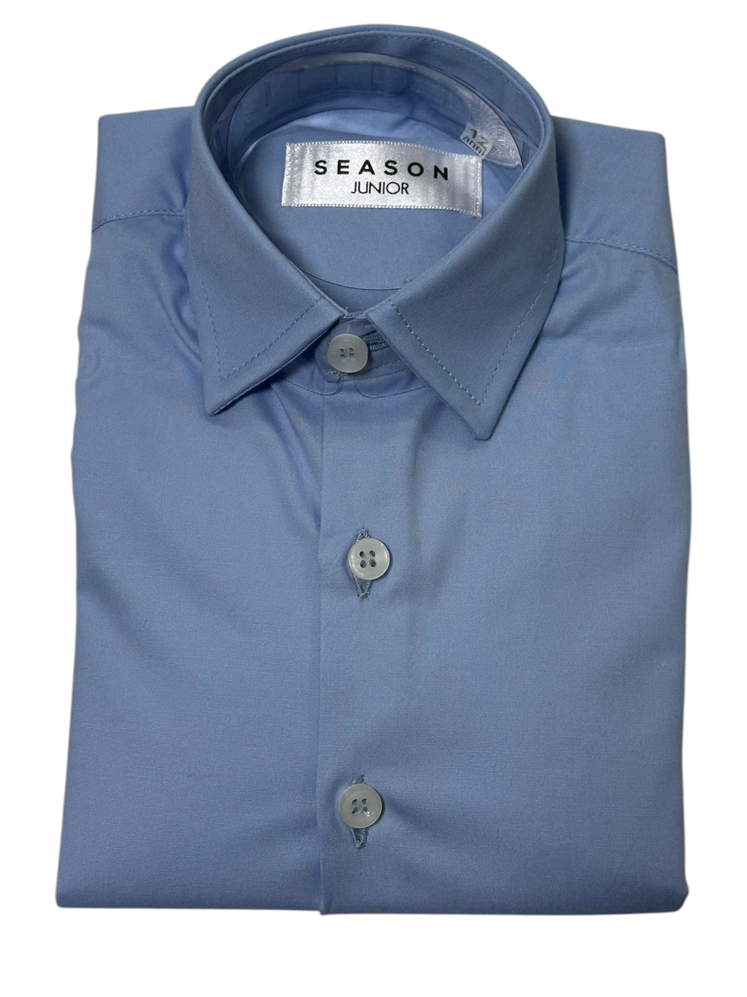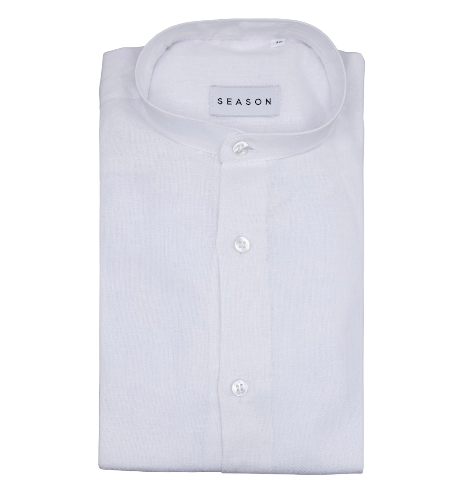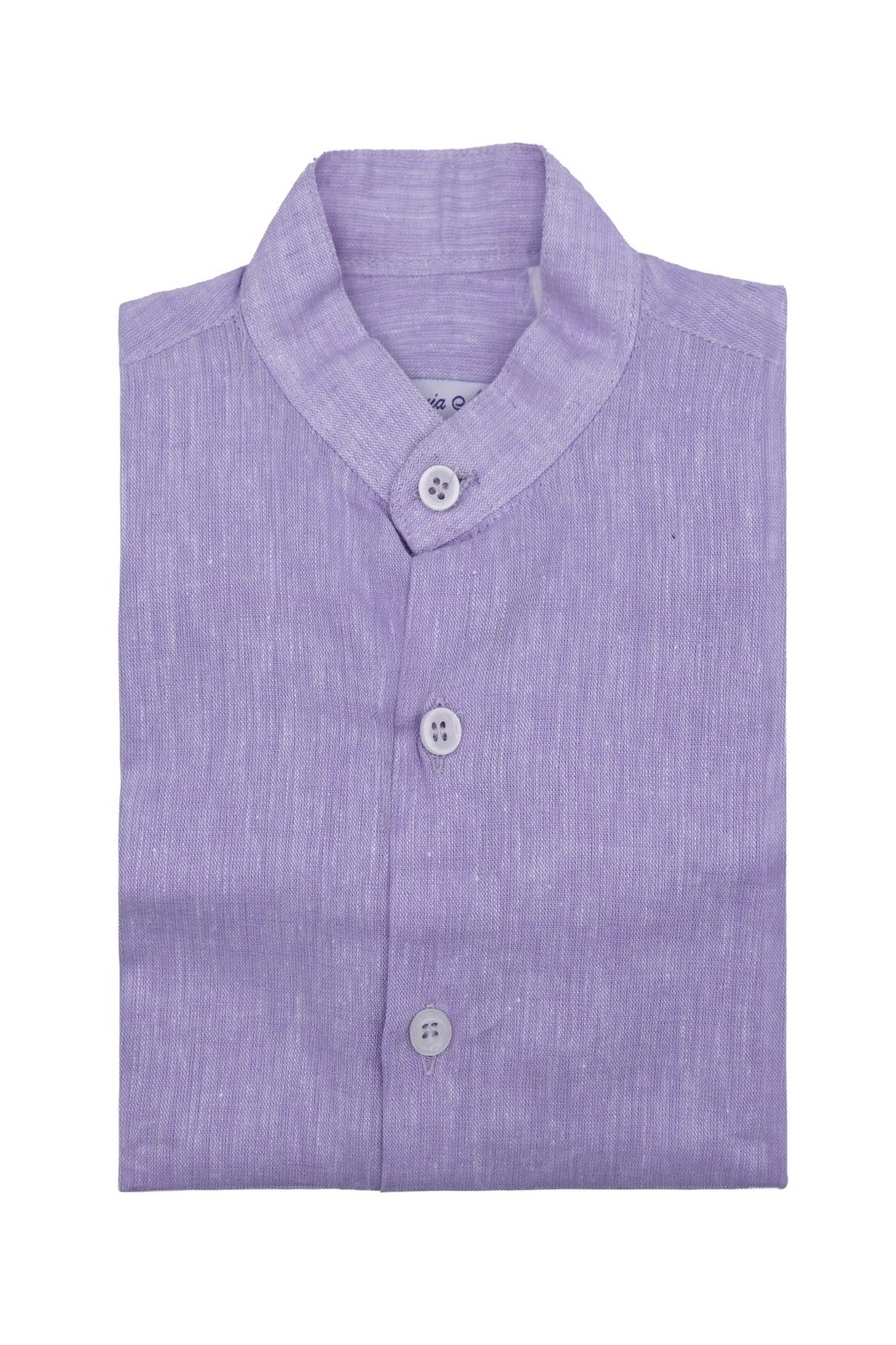 Camicia Lino Neonato Collo Coreano Blu Denim
