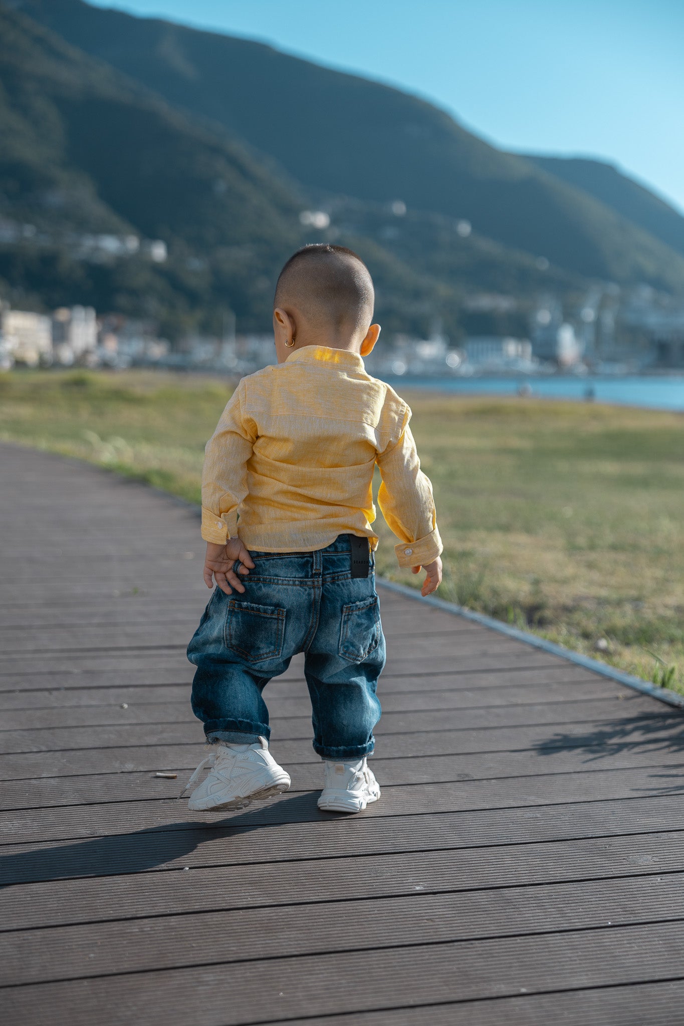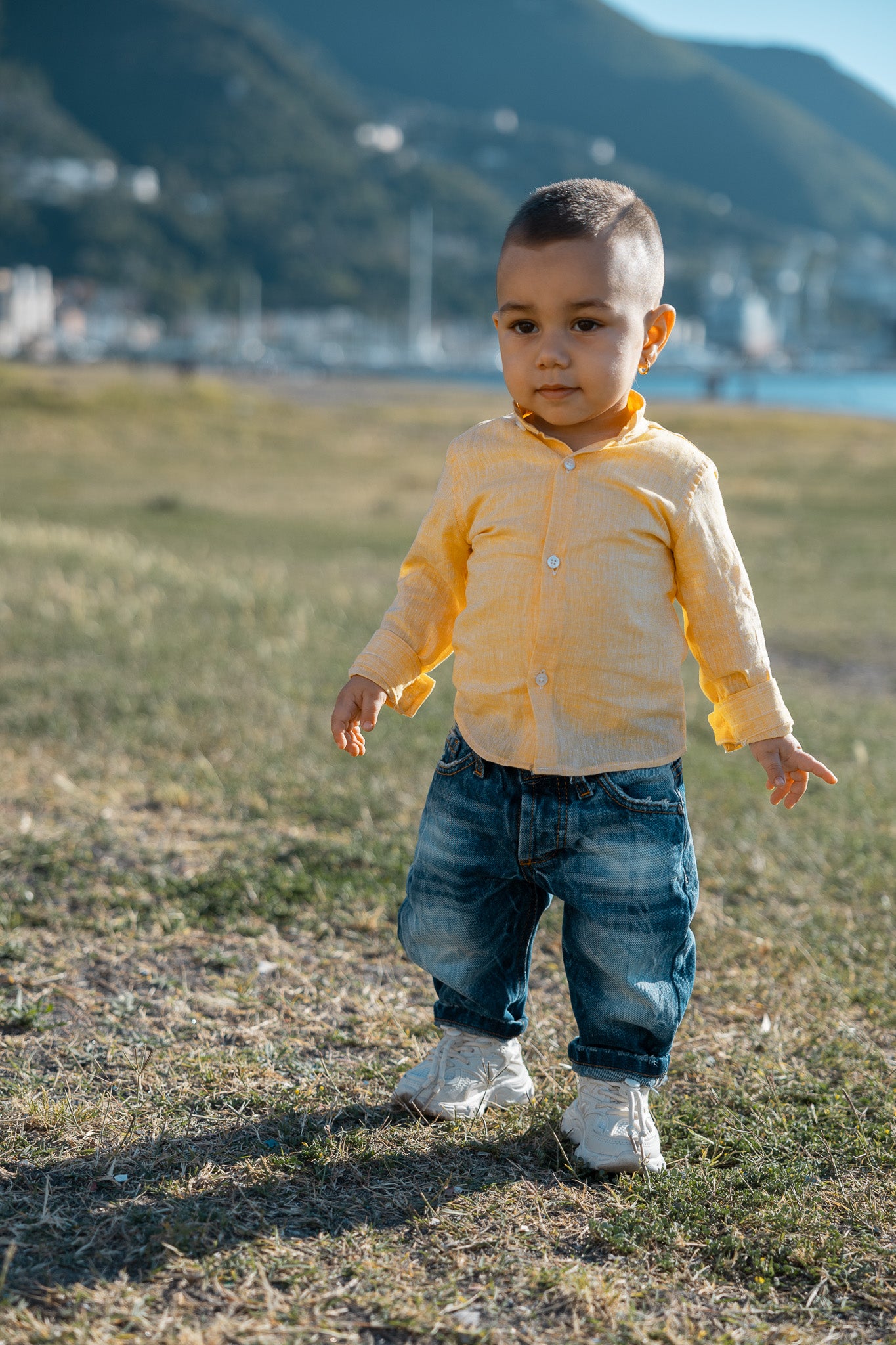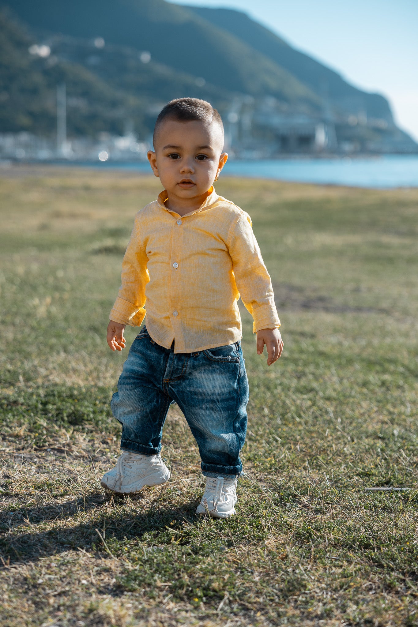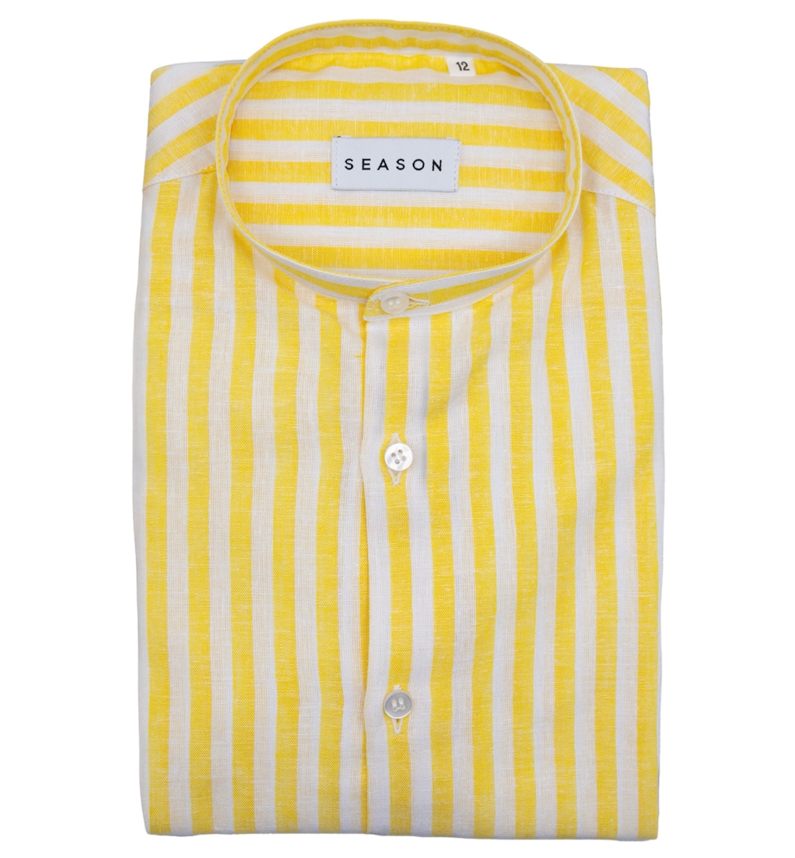 Camicia Lino Neonato Collo Coreano Rigata Gialla