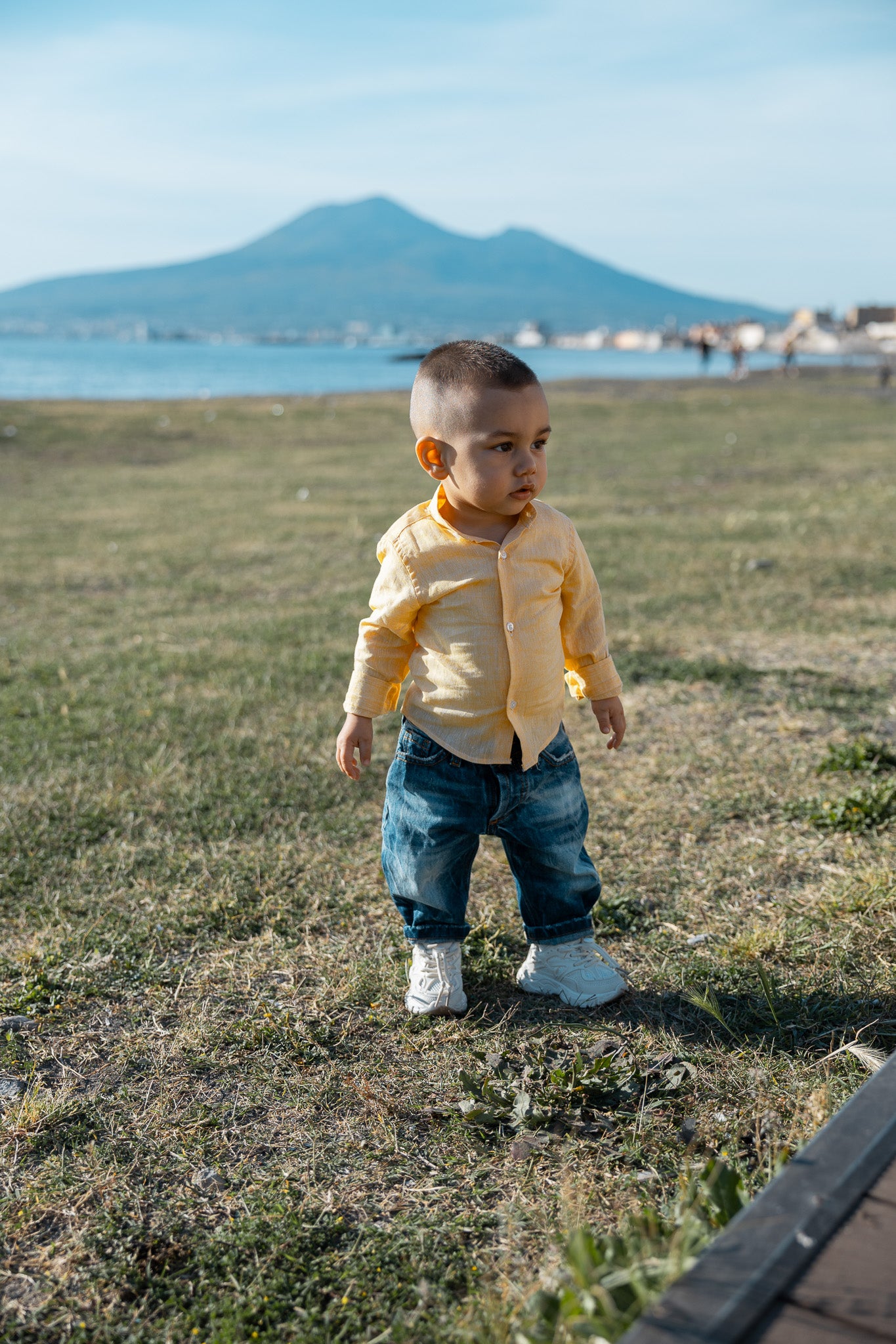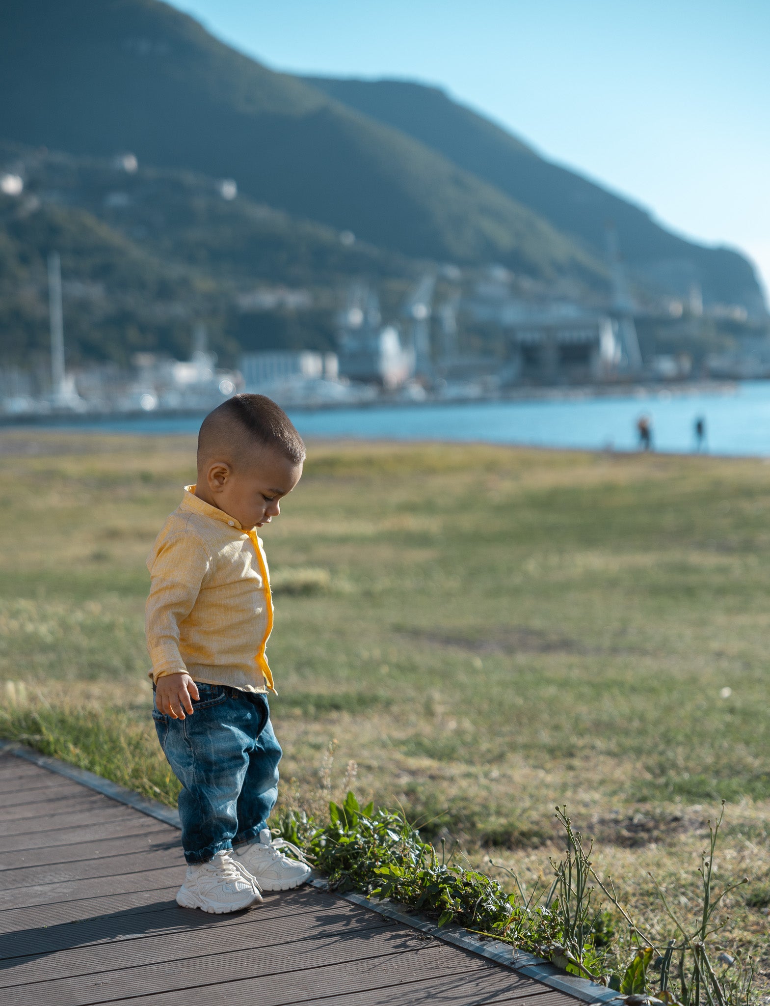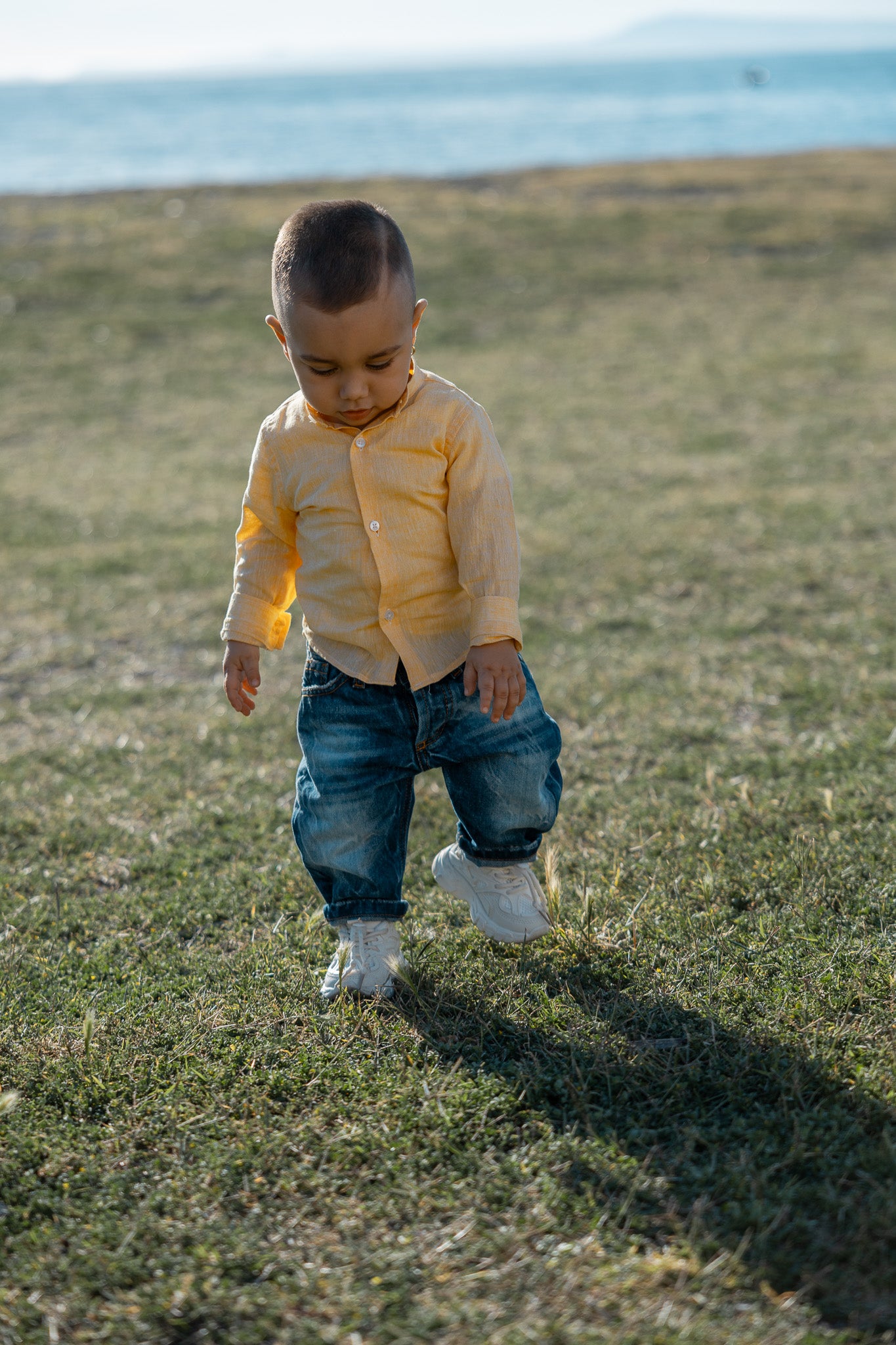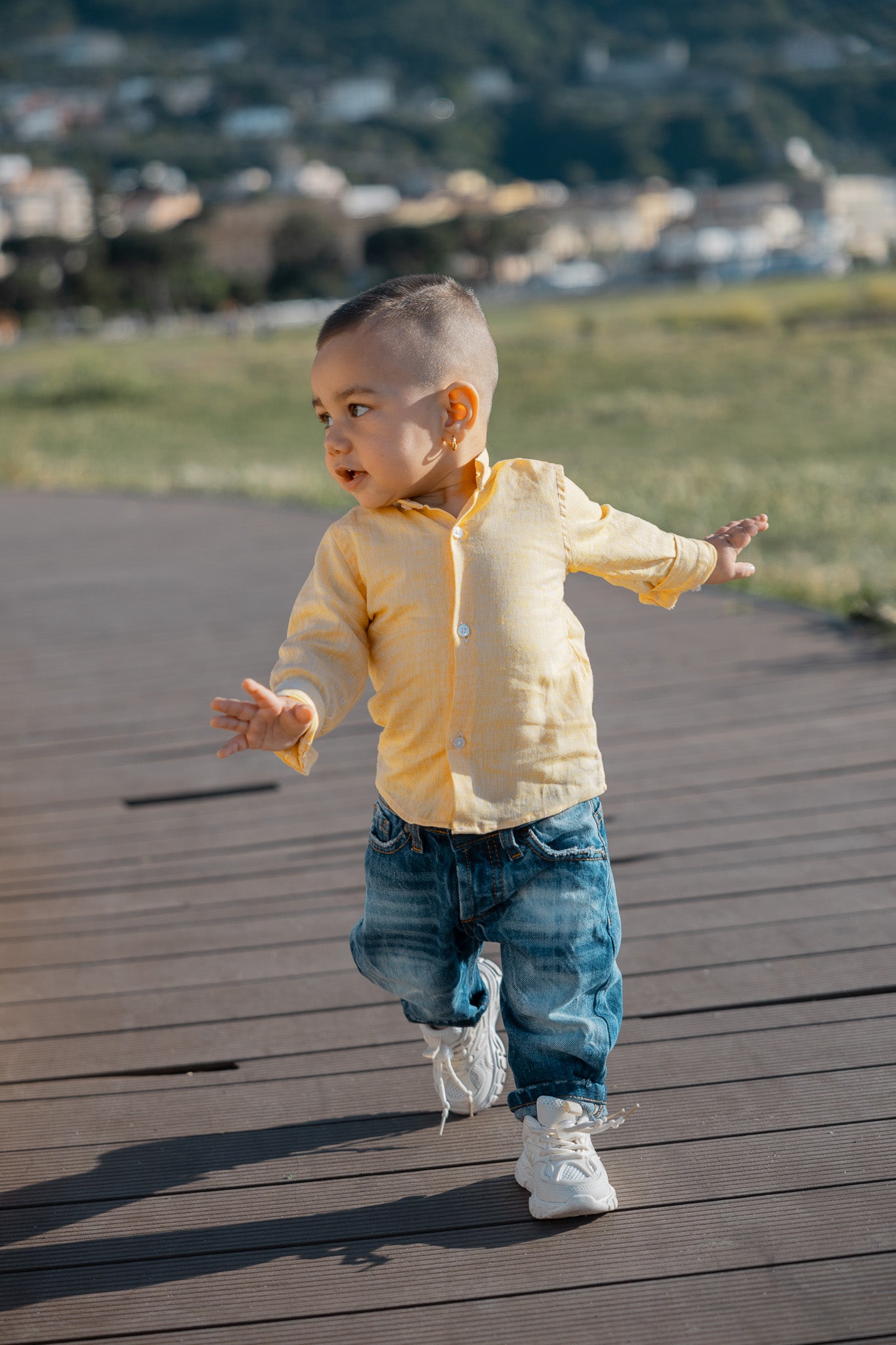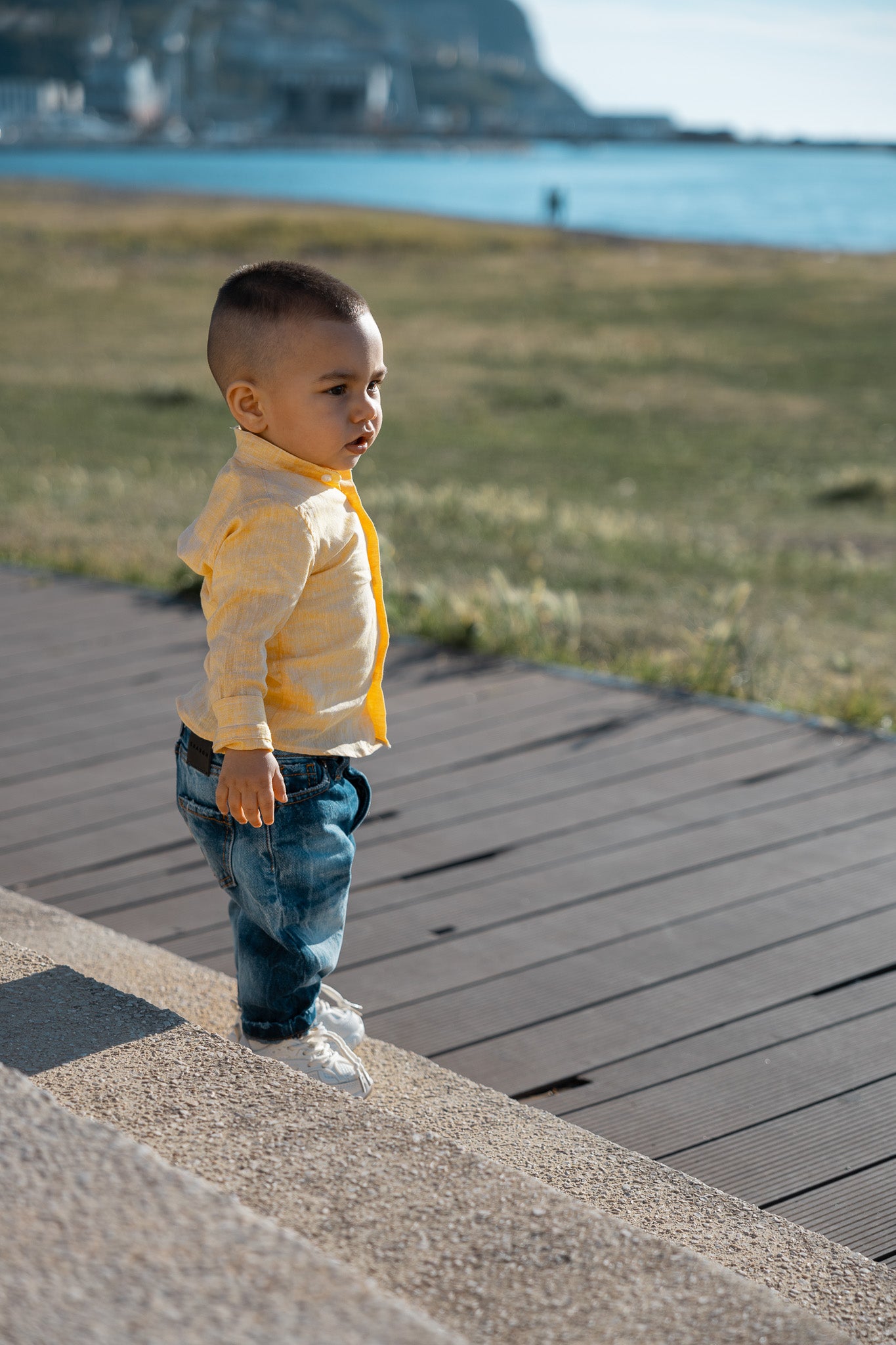 Camicia Lino Neonato Collo Coreano Rigata Gialla