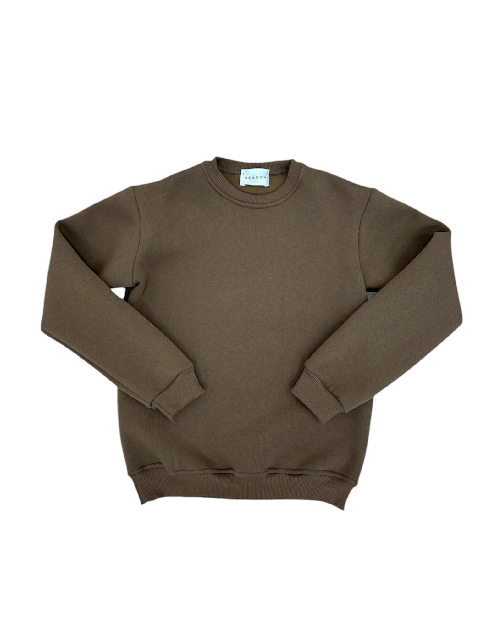 Felpa Cotone Garzato Girocollo Tabacco