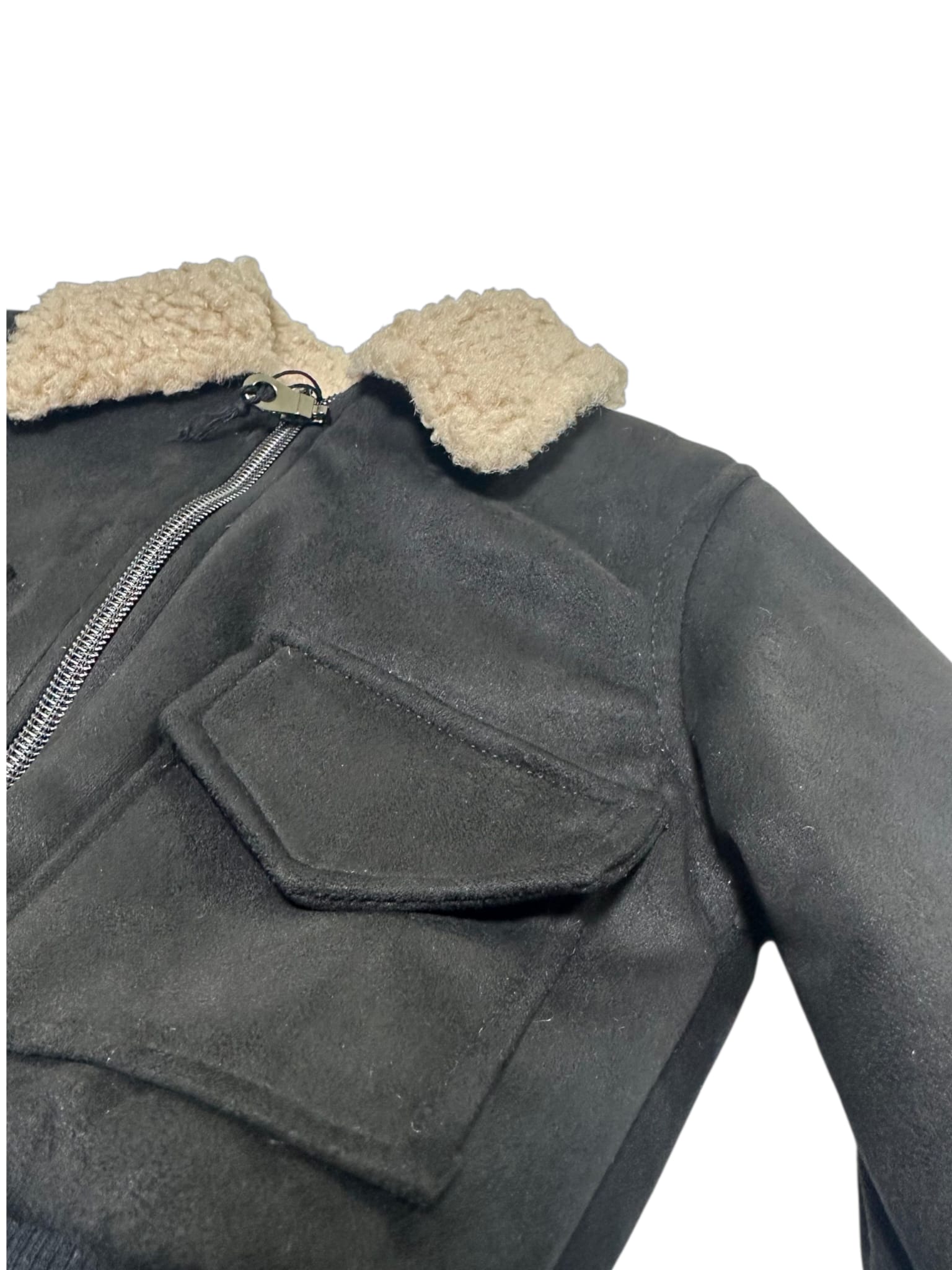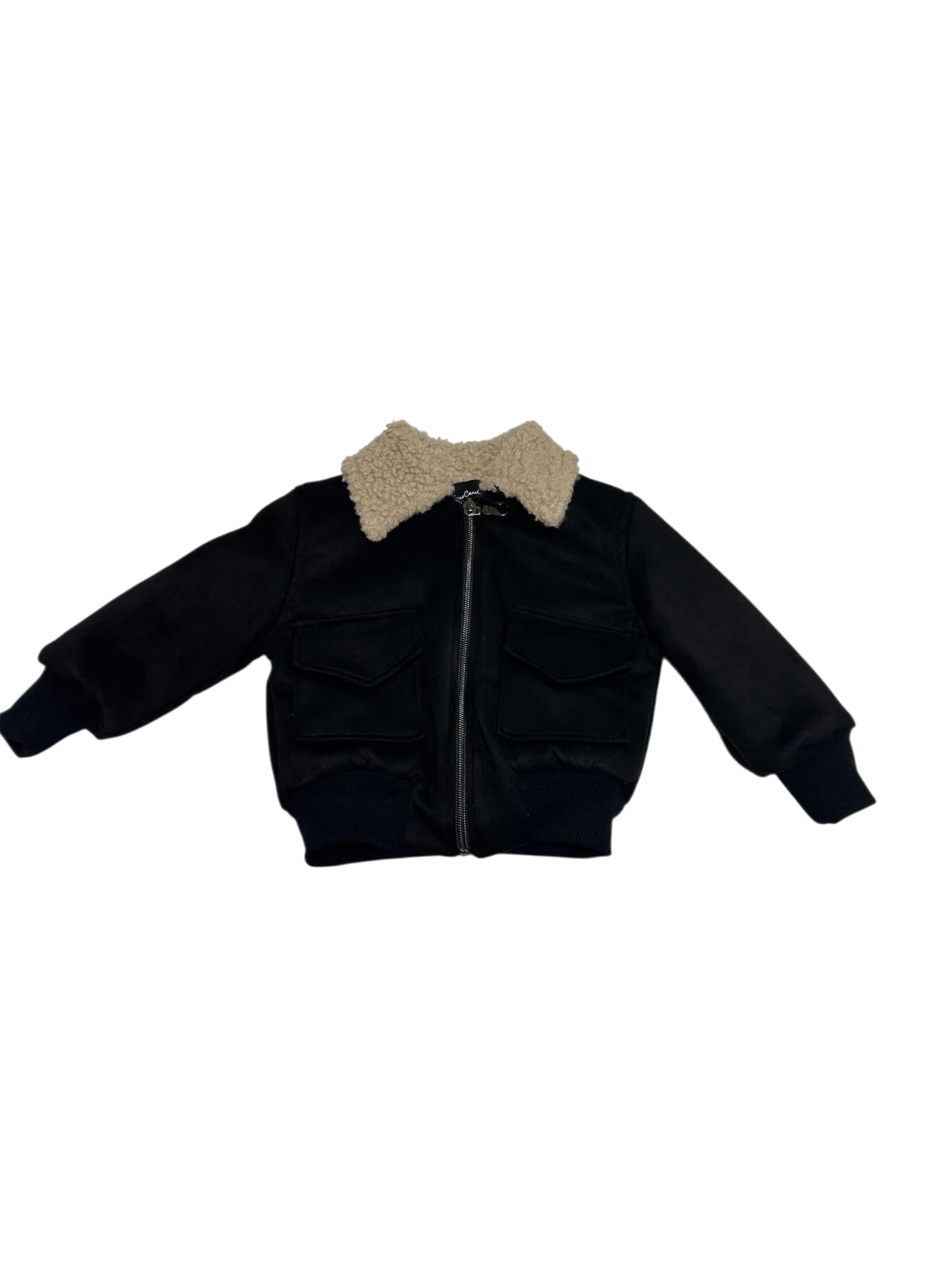 Bomber con collo in pelliccia neonato nero