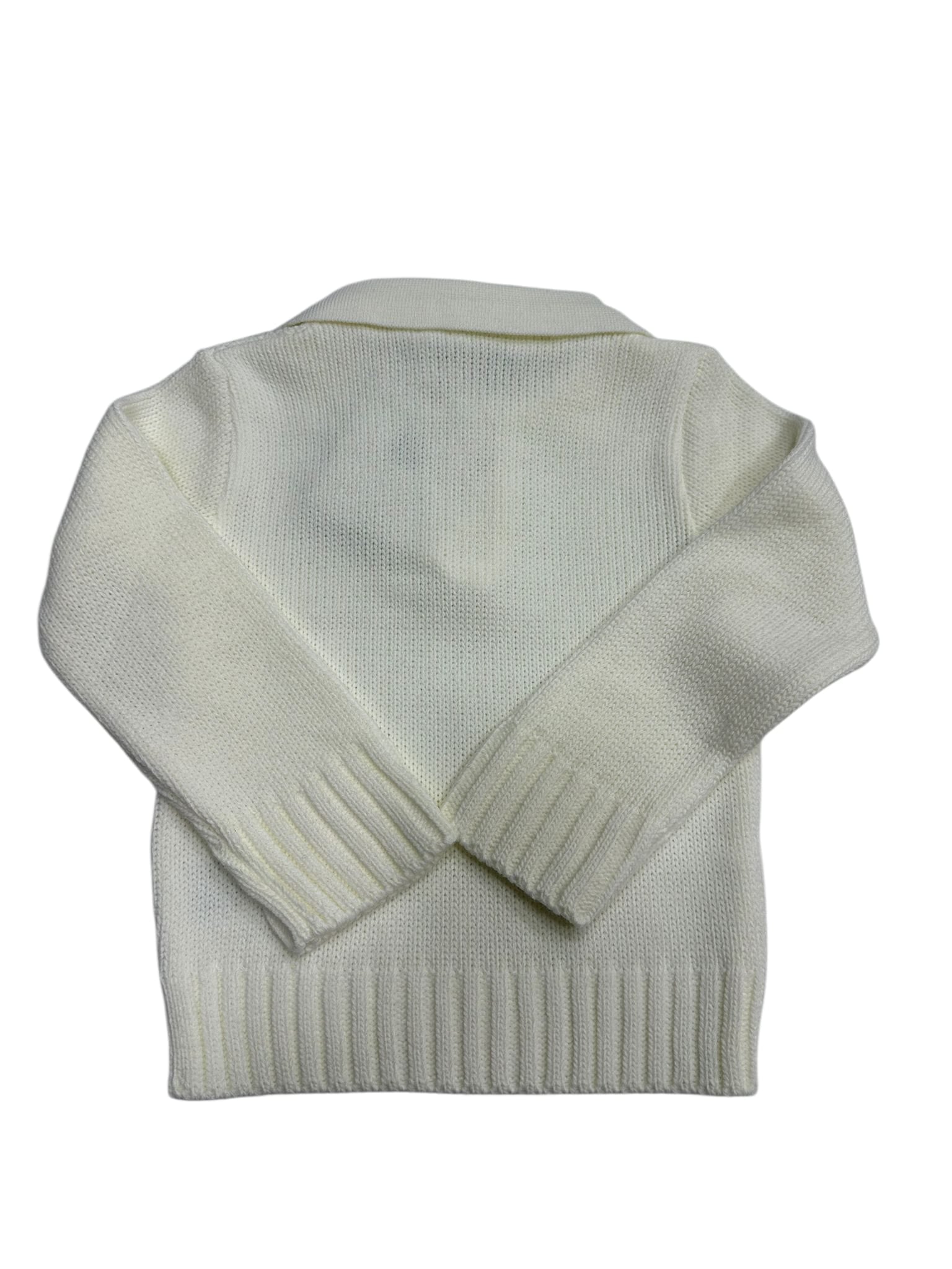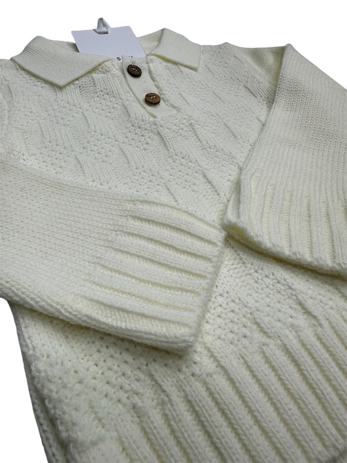 Elegante maglia polo doppia in tonalità panna, perfetta per uno stile raffinato e versatile. Realizzata con una morbida caduta che garantisce comfort durante tutto il giorno, presenta un dettaglio bottone di qualità e una trama in lana che assicura calore e traspirabilità. Ideale per creare look sofisticati, sia casual che più formali. Un capo essenziale che unisce praticità e eleganza, destinato a diventare un must-have nel guardaroba dei più piccoli.