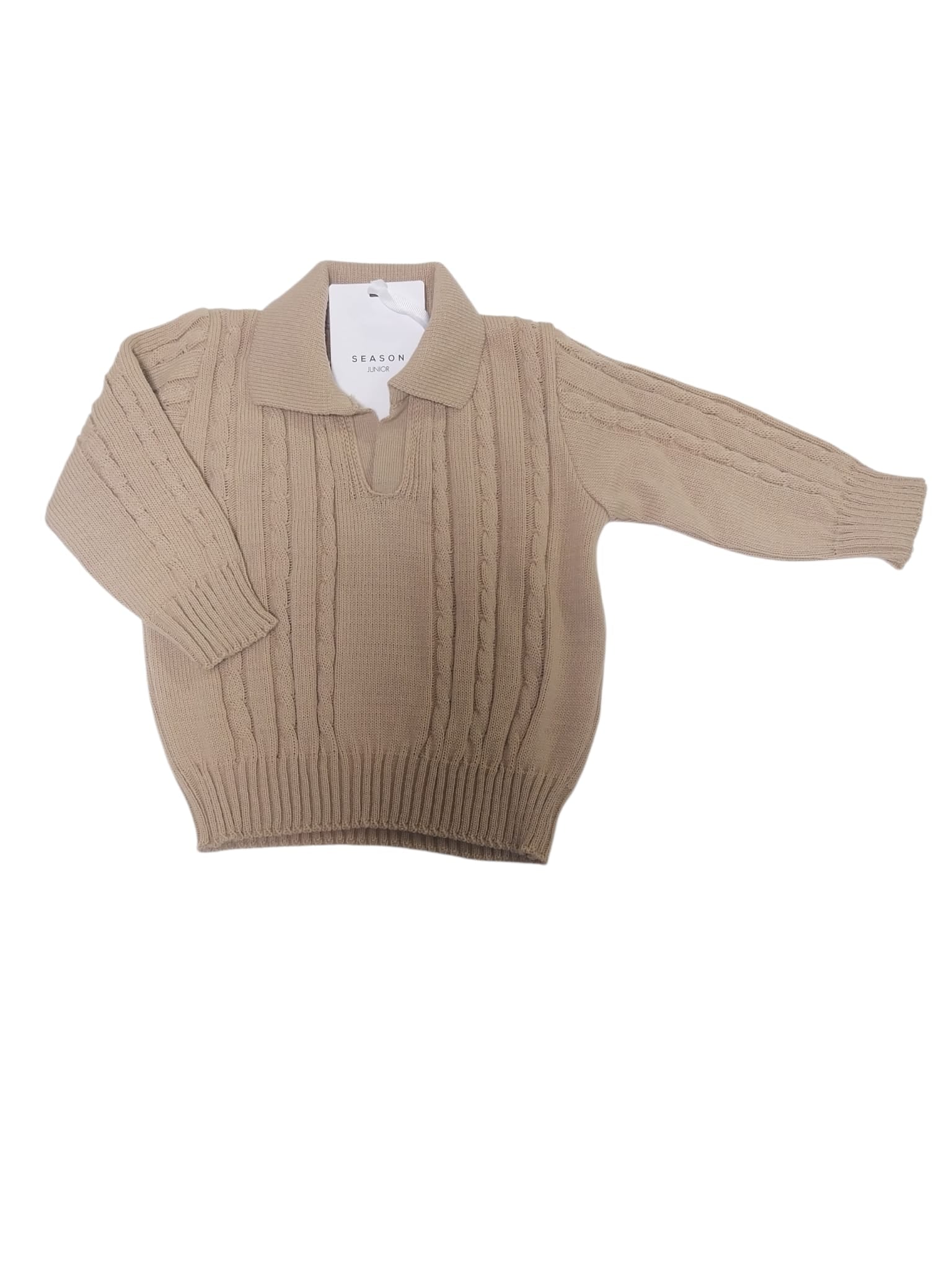POLO COLLO V CON TRECCIA BEIGE BIMBO