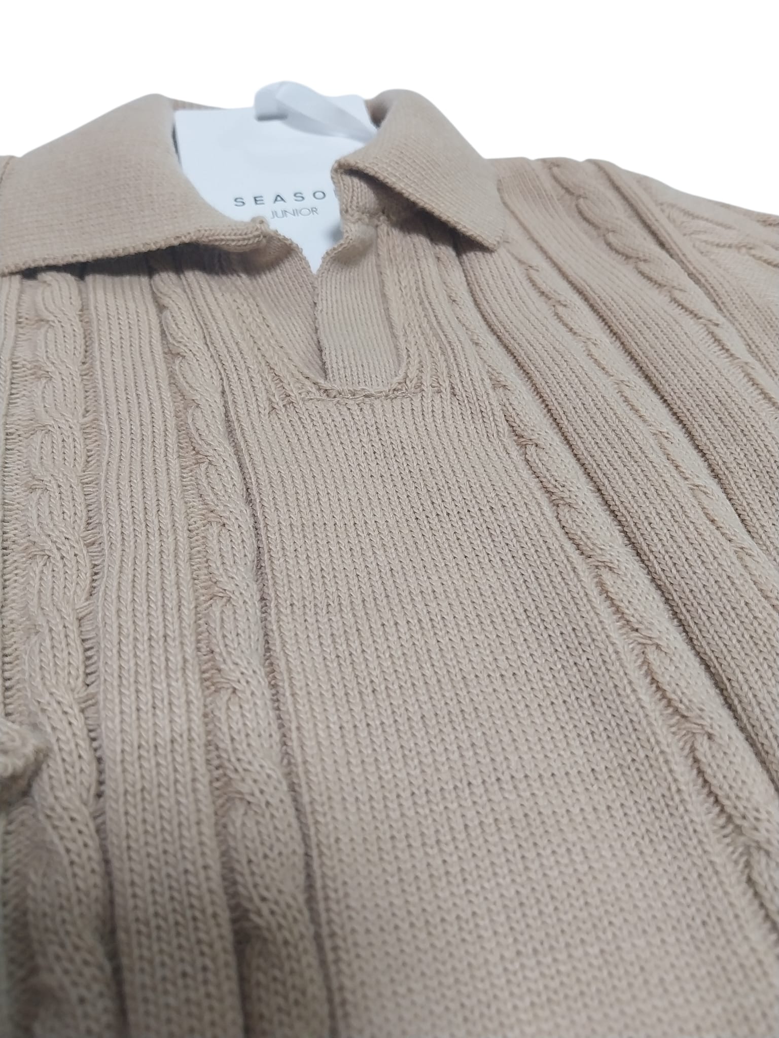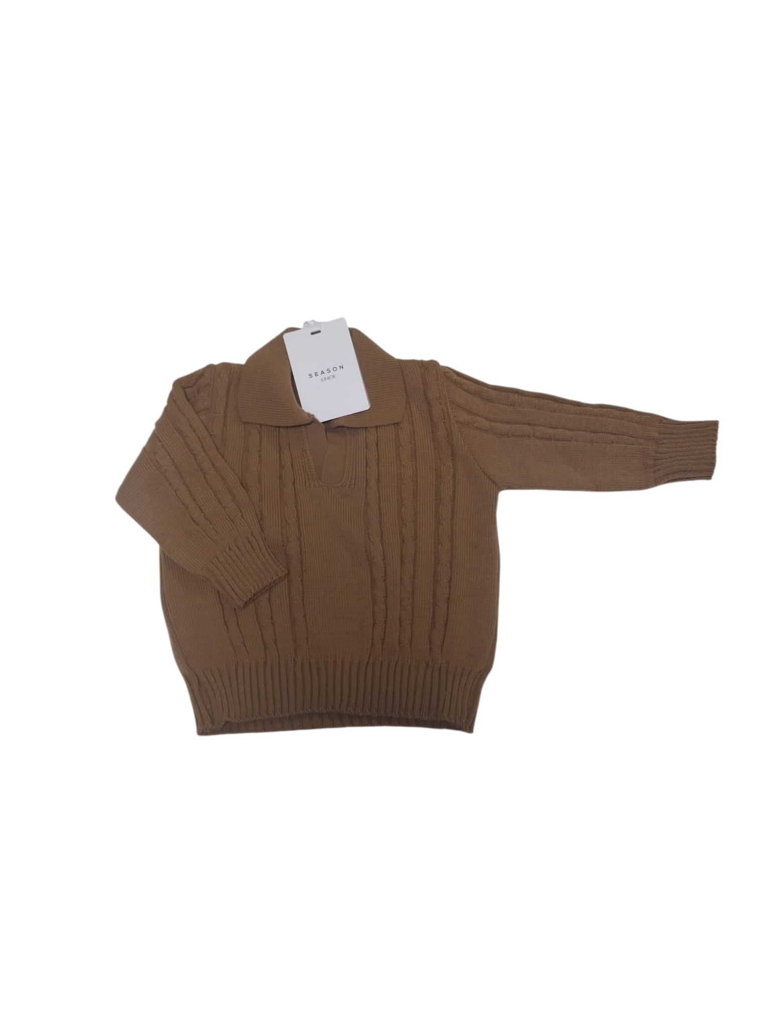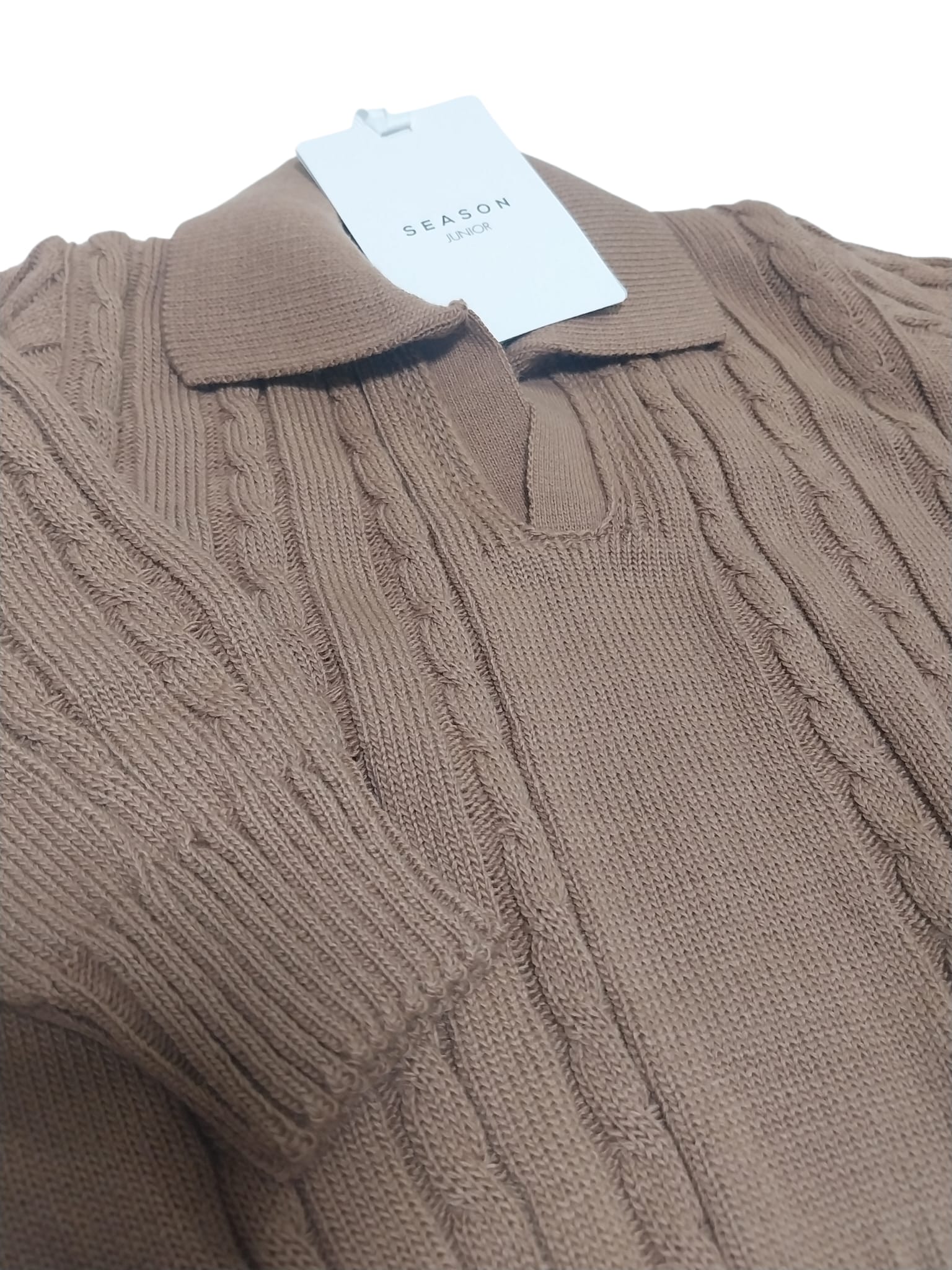 POLO CON COLLO V E TRECCIA MARRONE BAMBINO