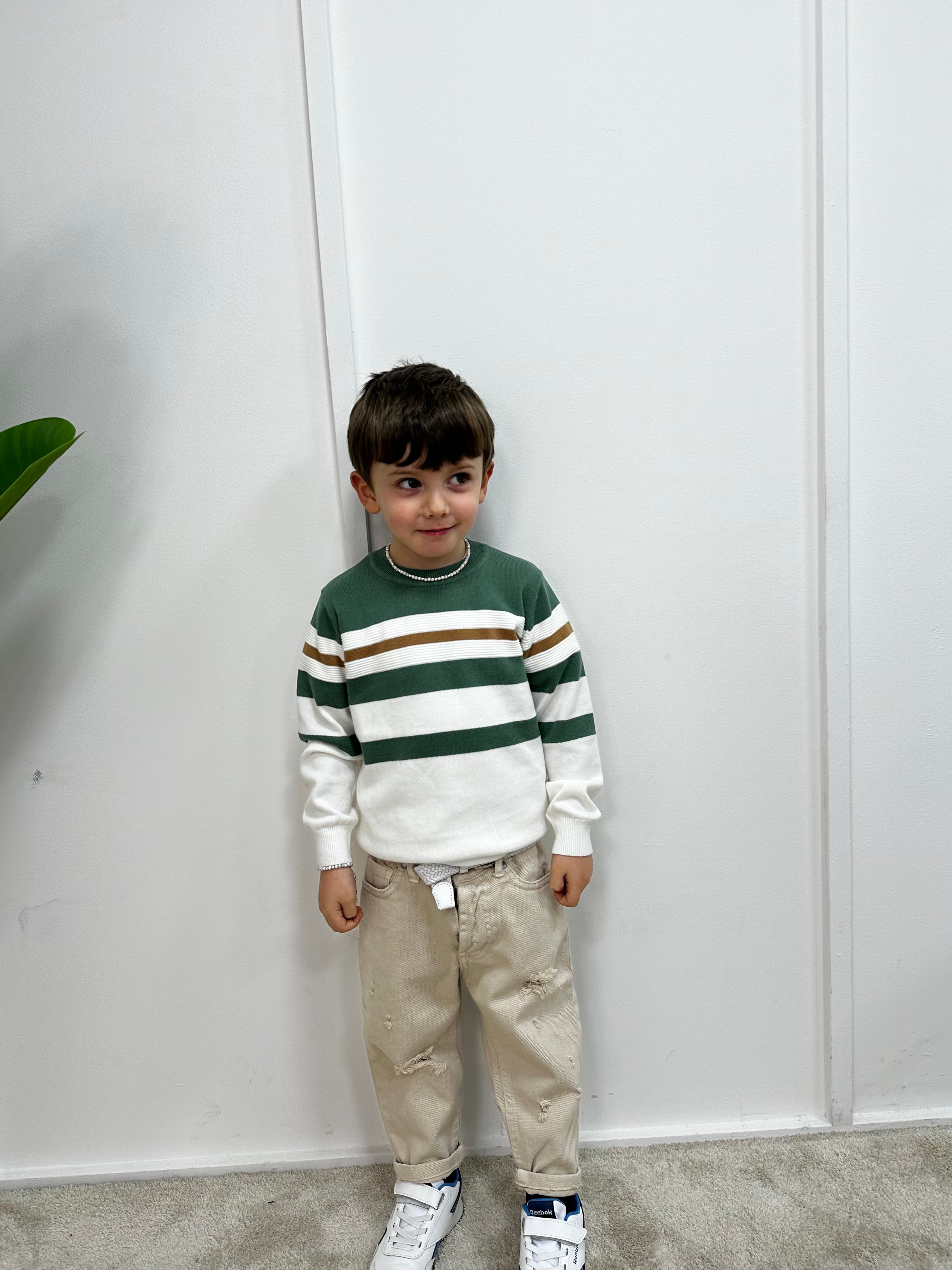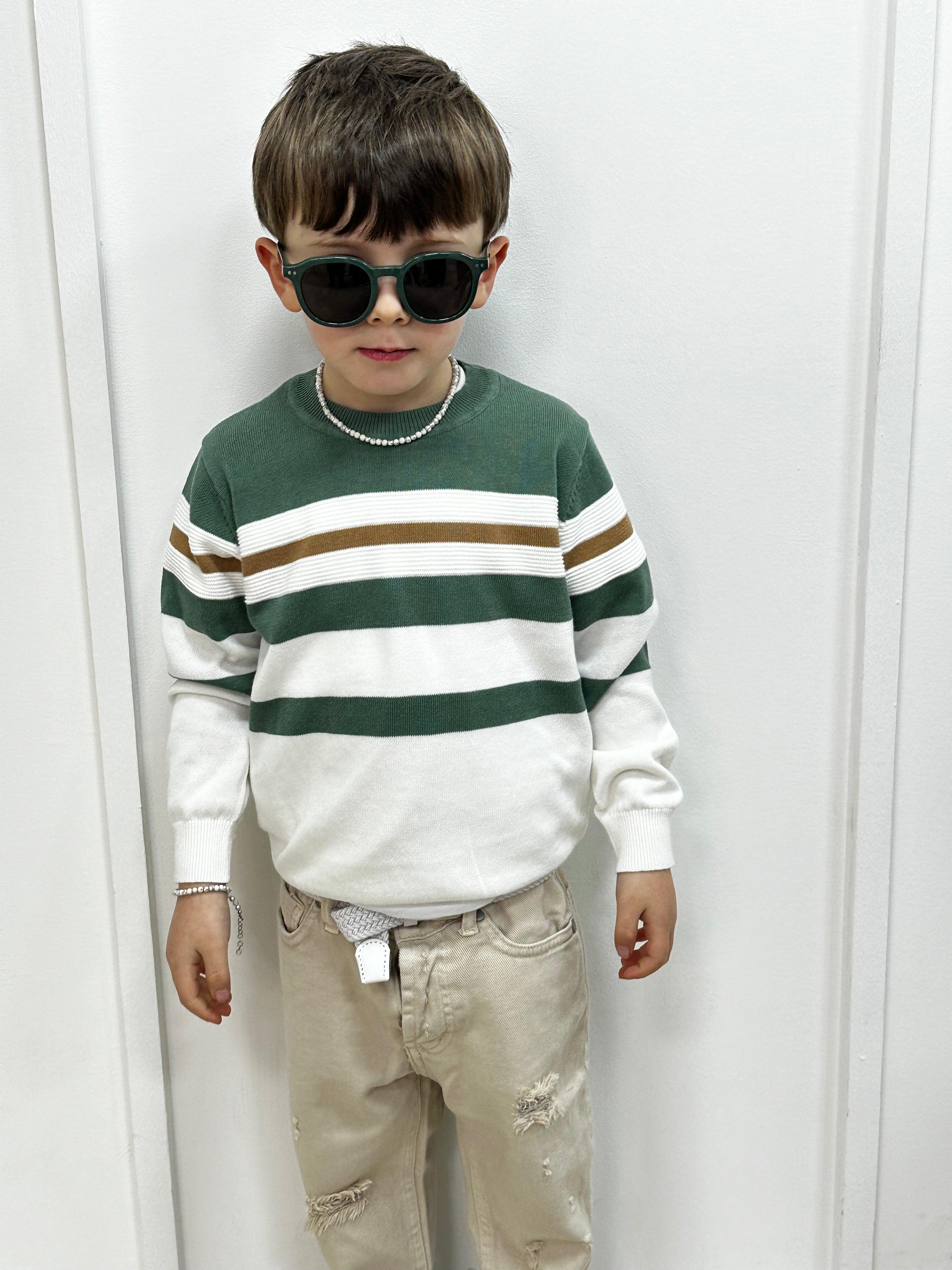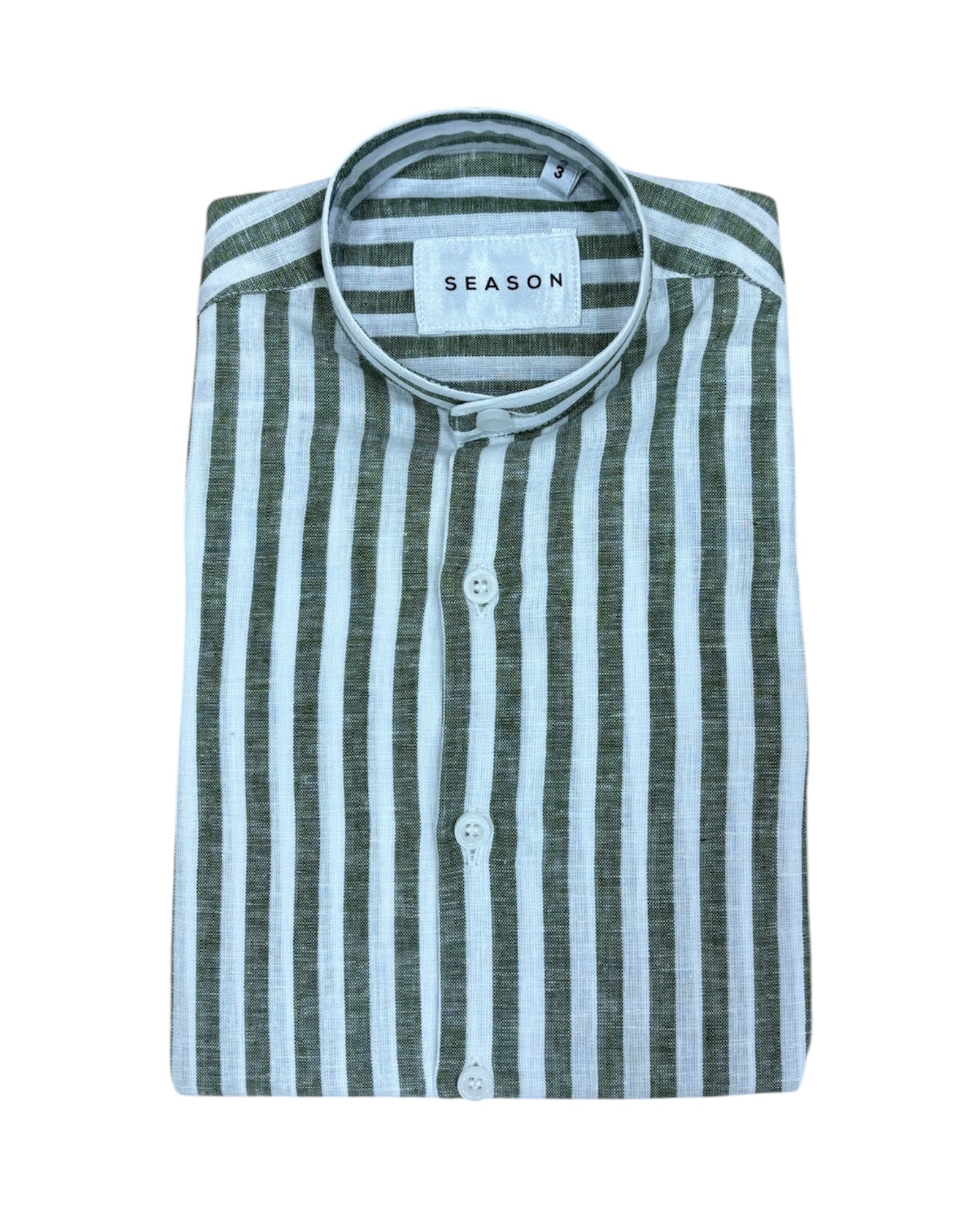 Camicia Lino Bimbo Collo Coreano Rigata Verde