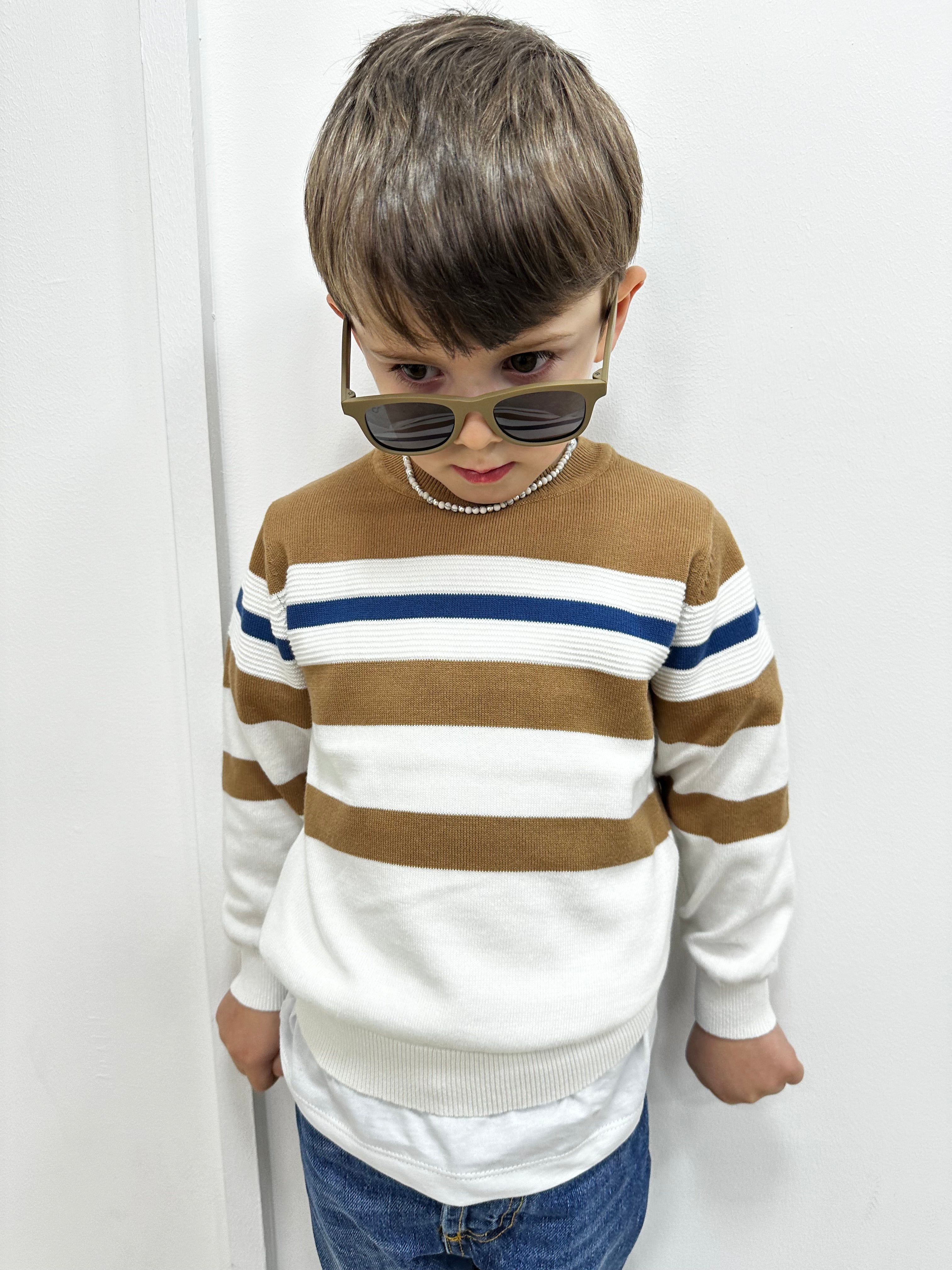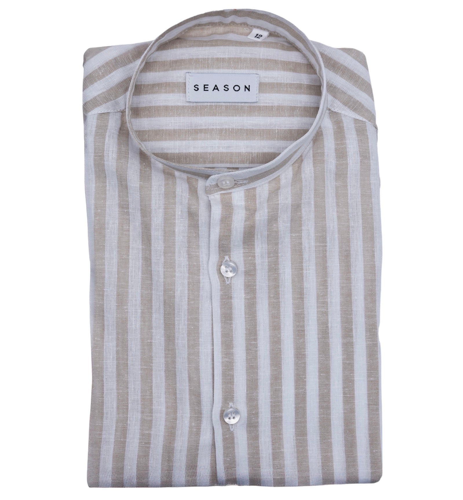 Camicia Bimbo Lino Collo Coreano Rigata Beige