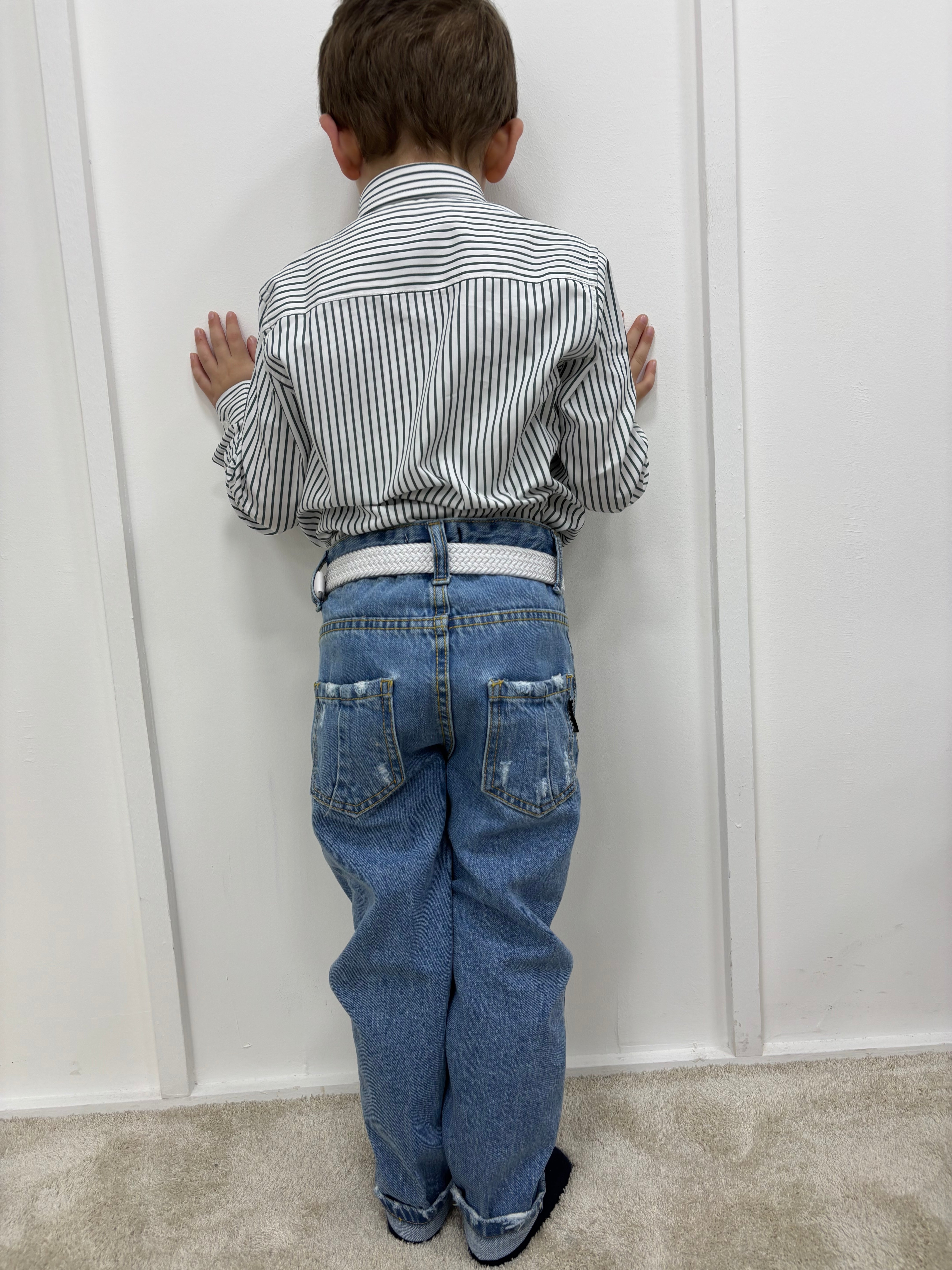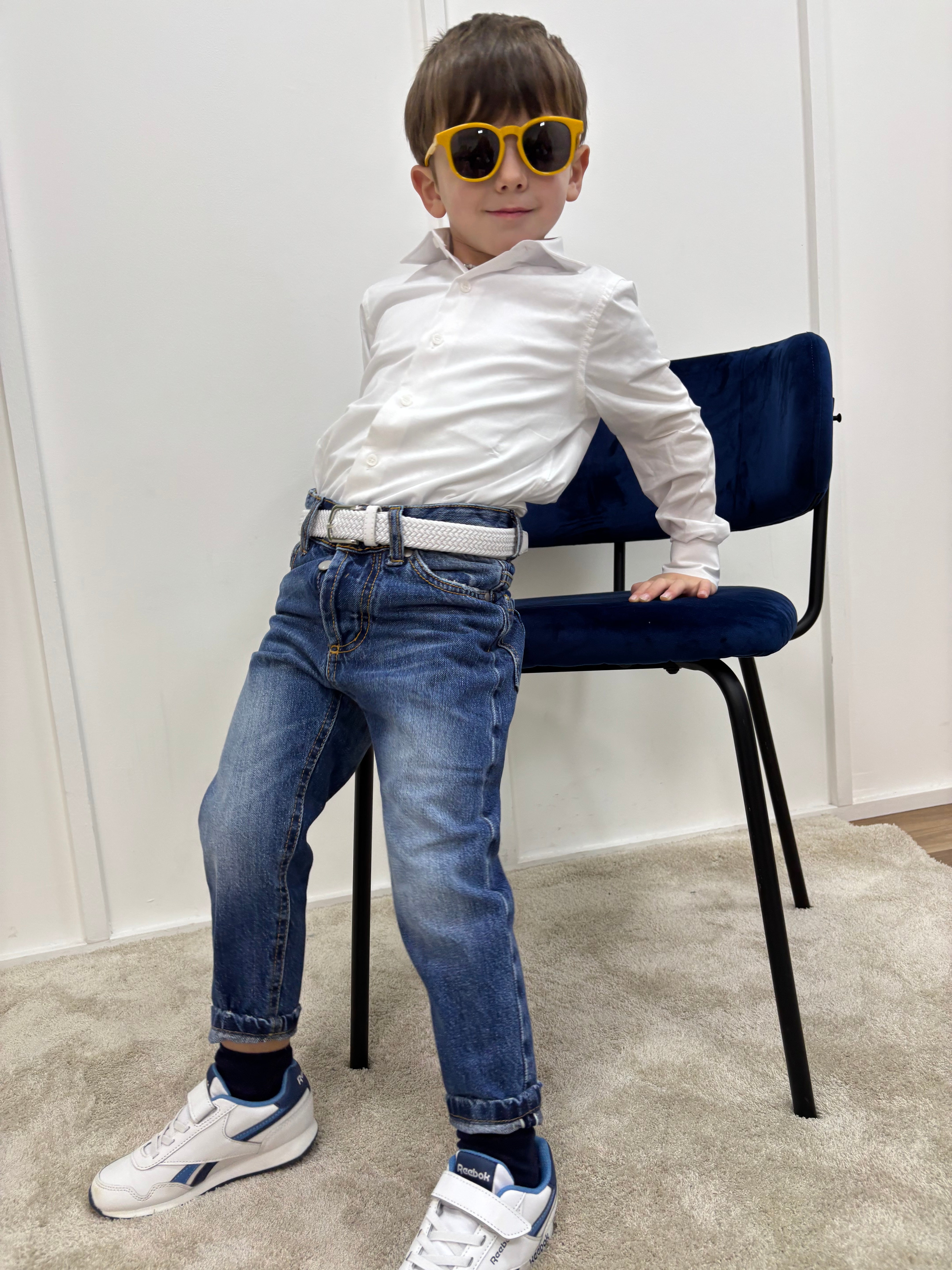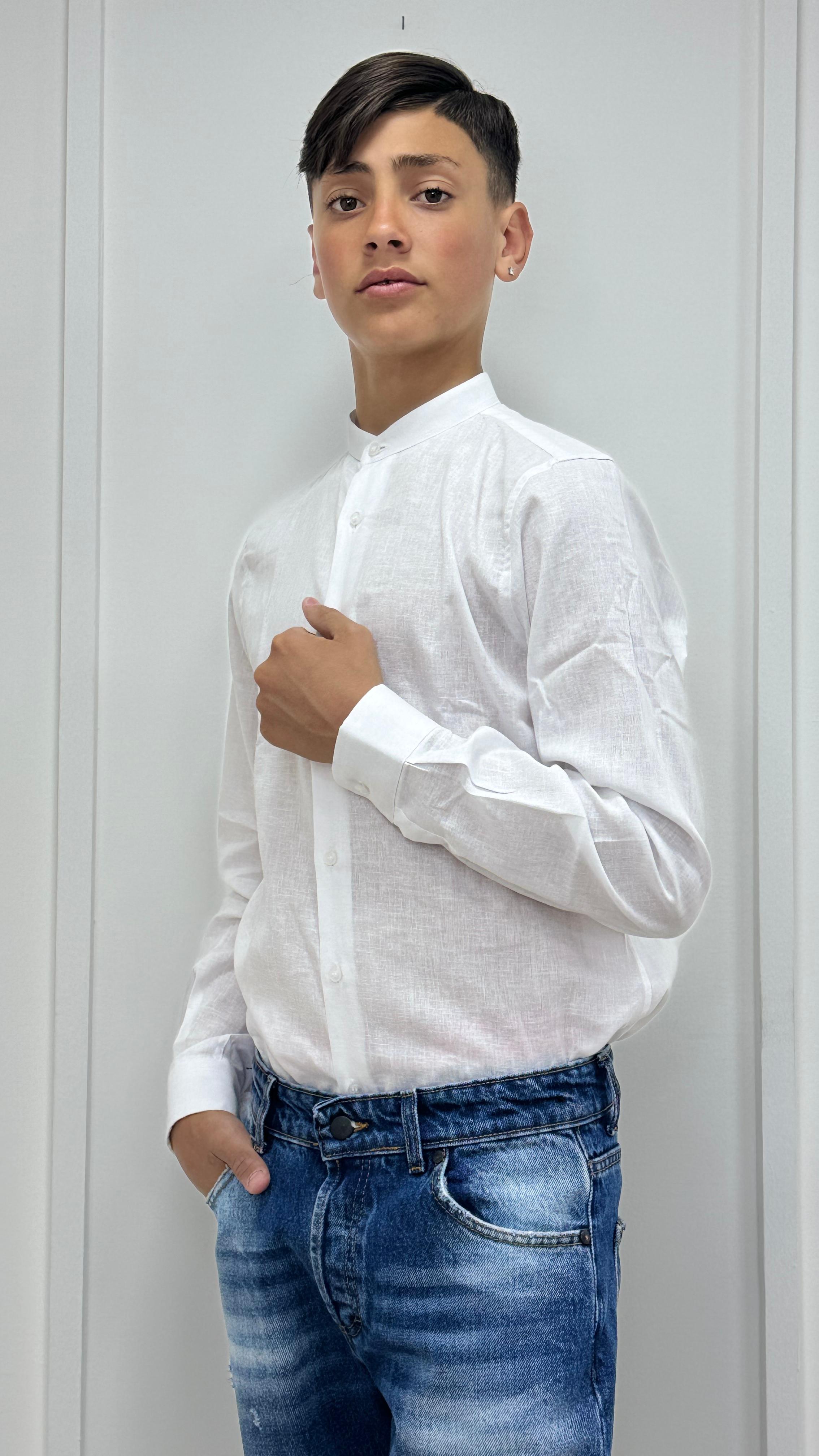 Camicia Bimbo Lino Collo Coreano Bianca