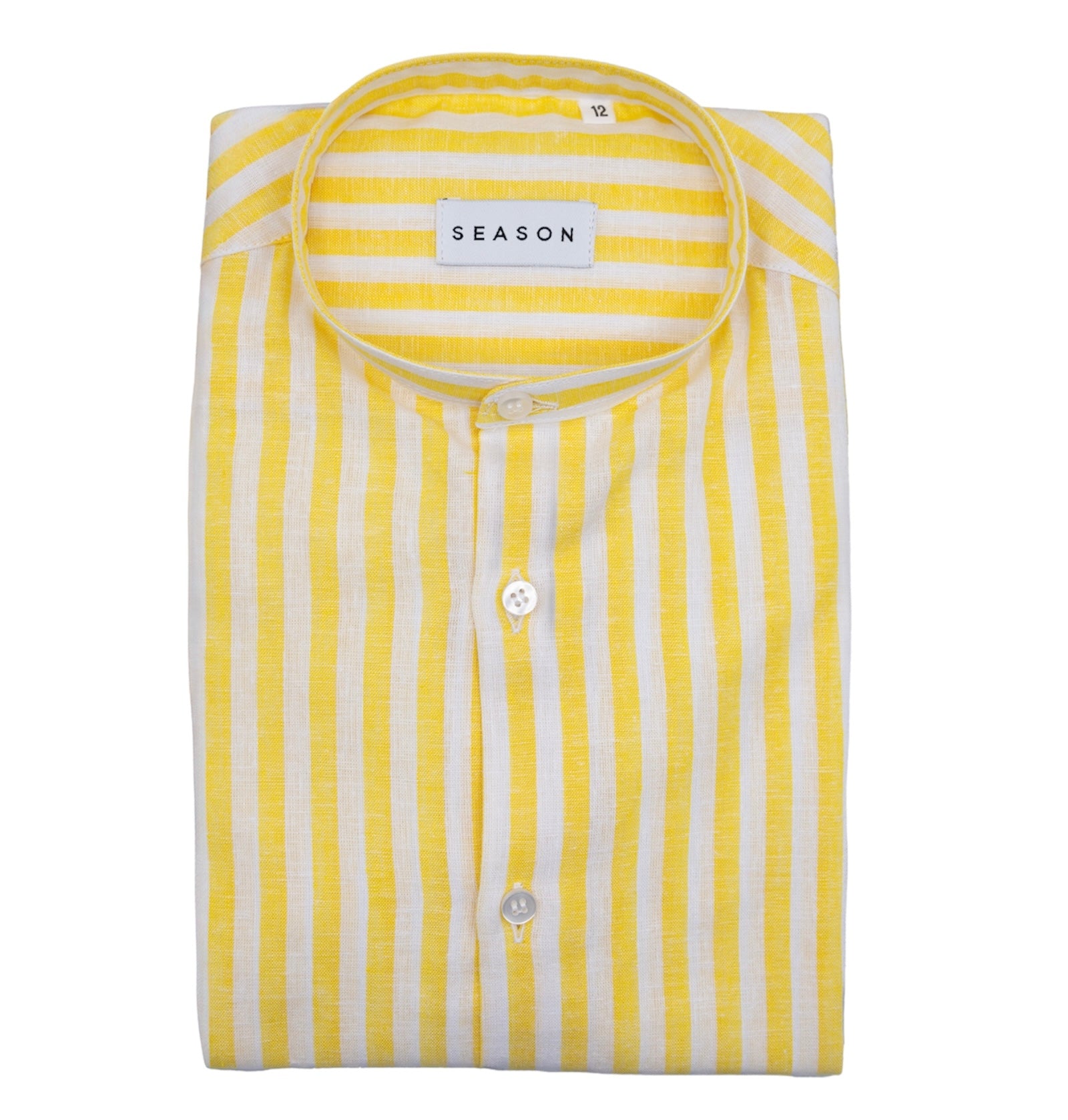 Camicia Bimbo Lino Collo Coreano Rigata Gialla