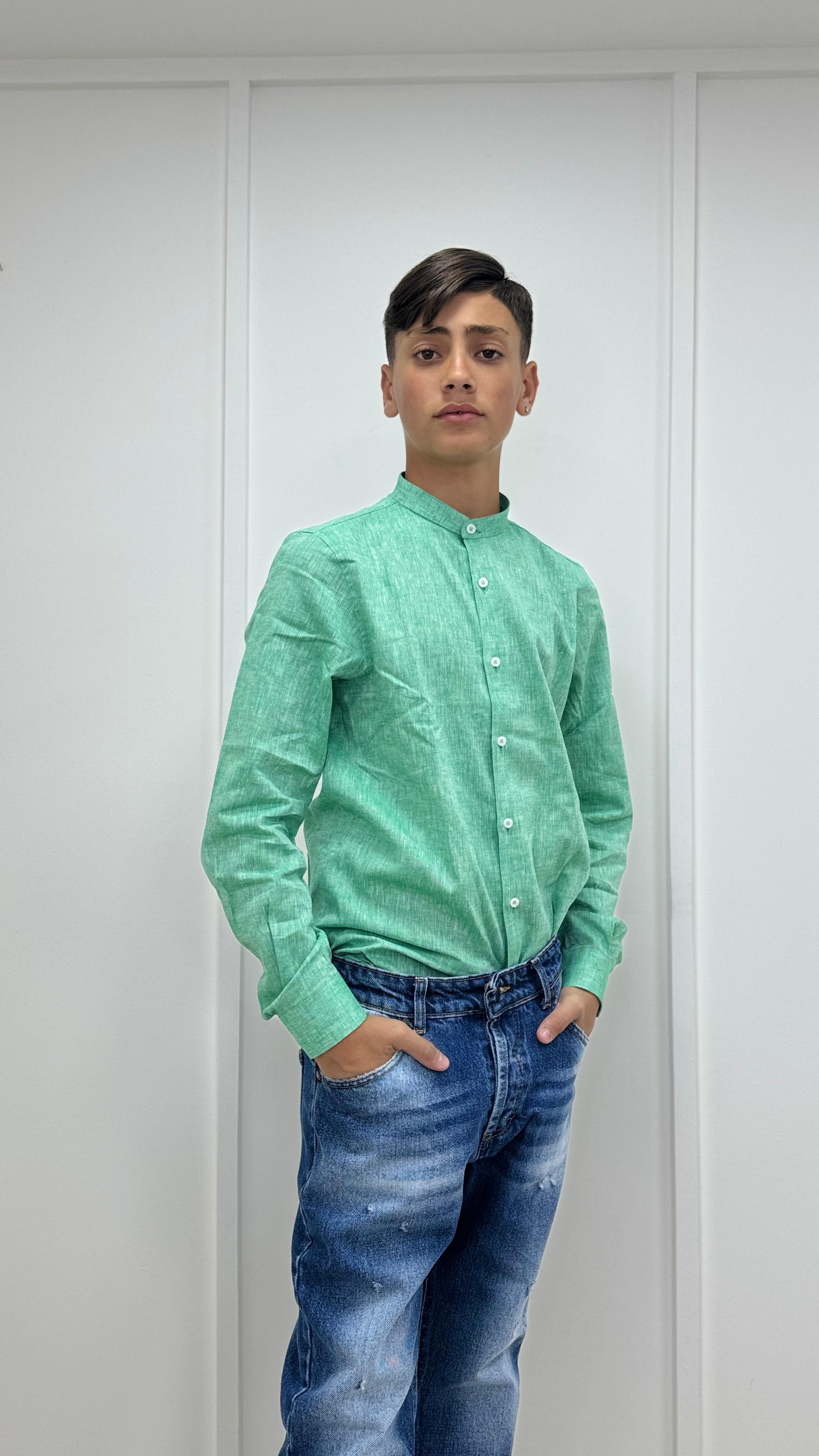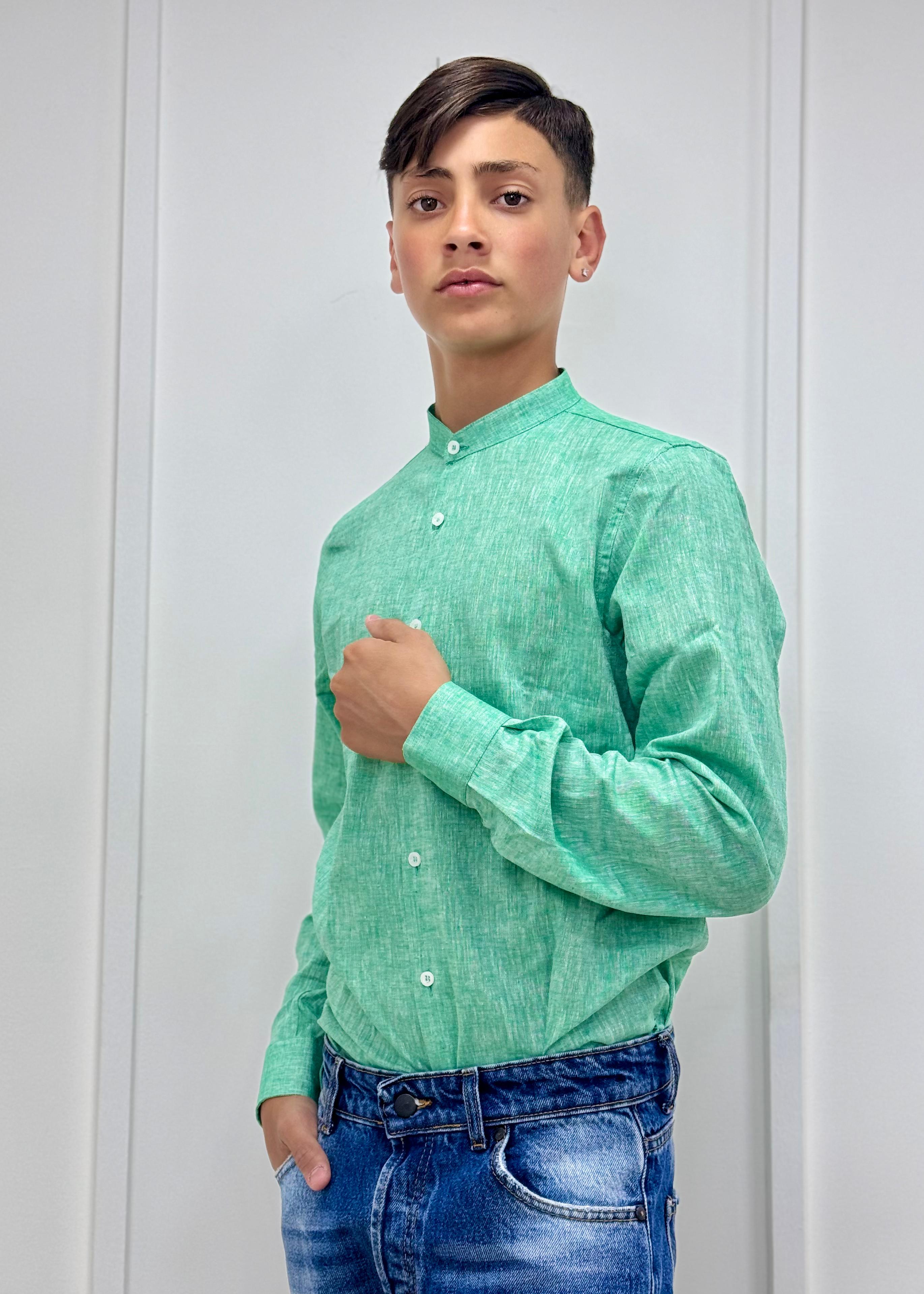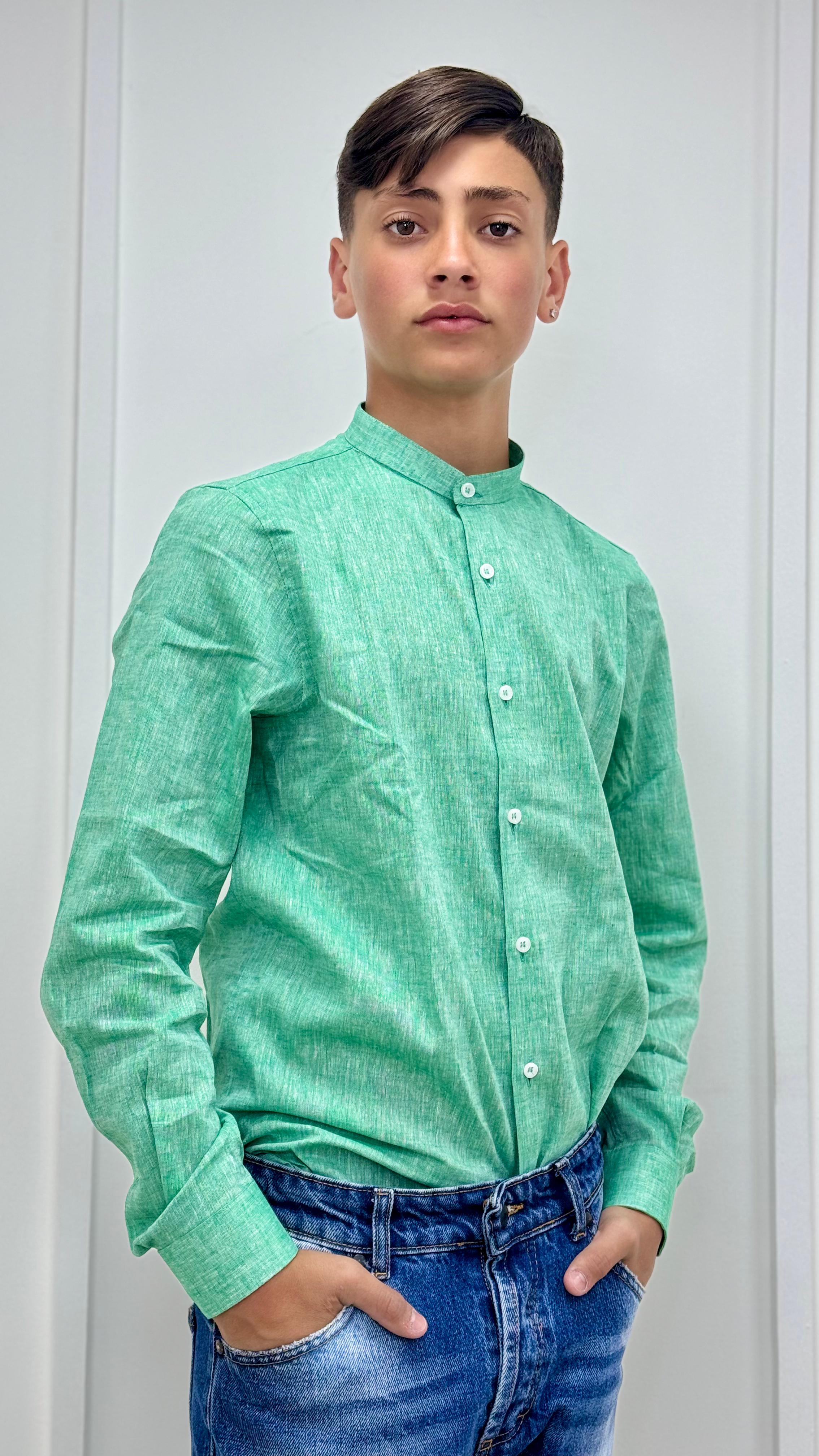 Camicia Lino Bimbo Collo Coreano Verde