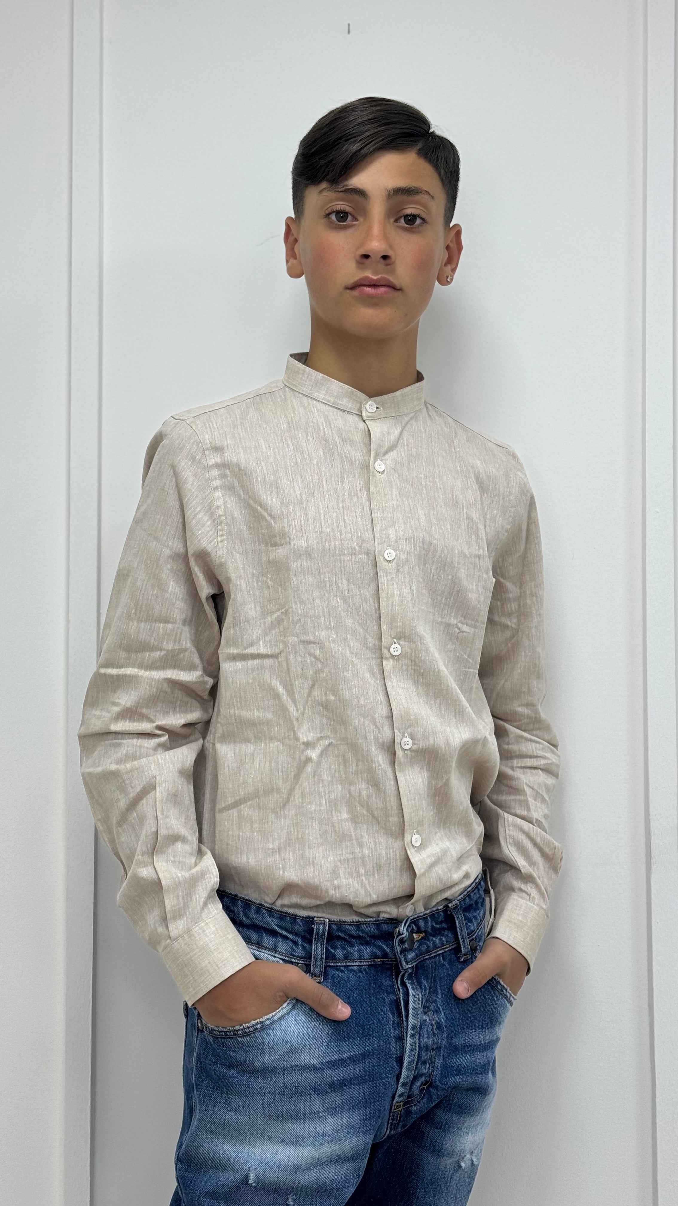 Camicia Bimbo Collo Coreano Lino Beige