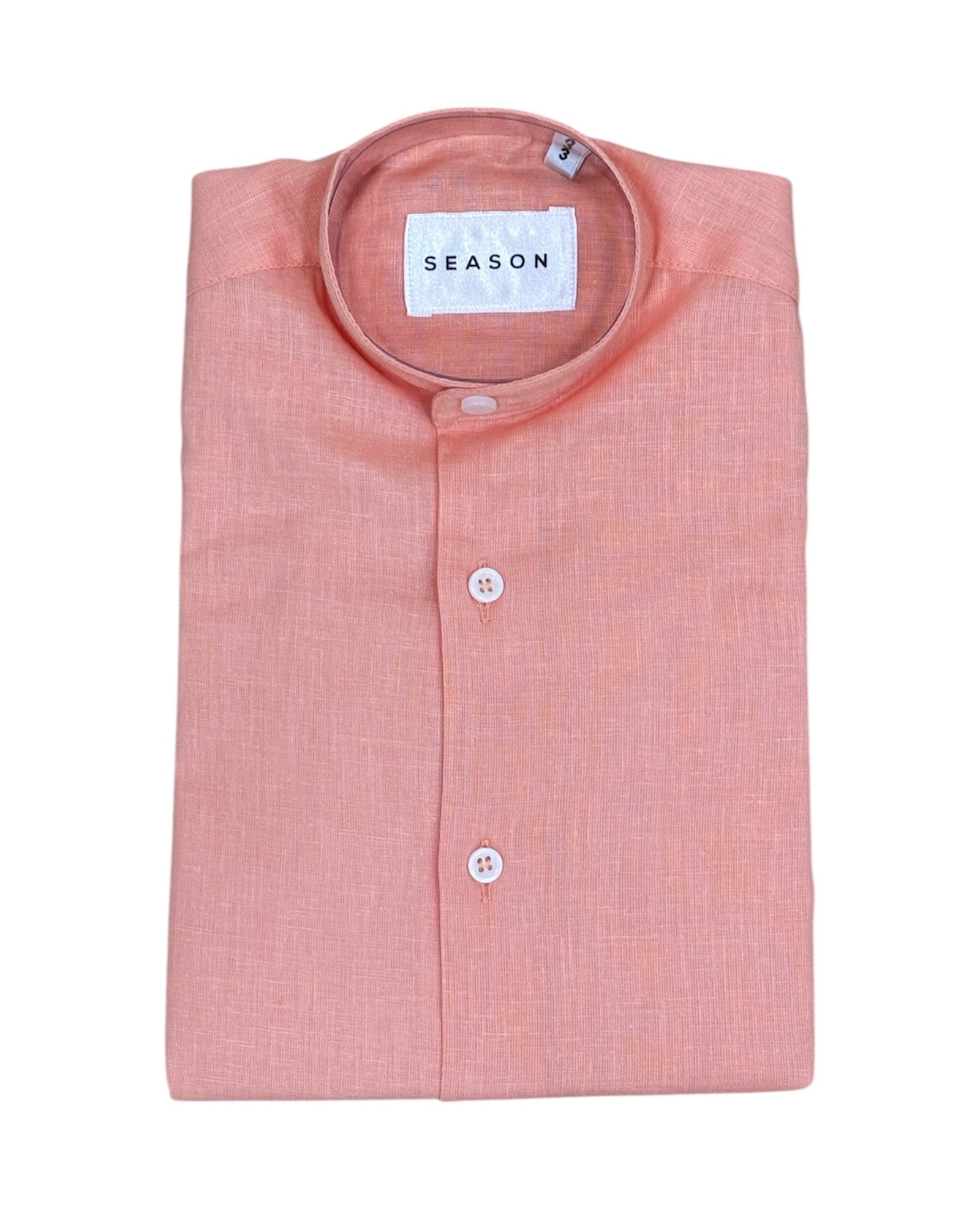 Camicia Lino Bimbo Collo Coreano Pesca