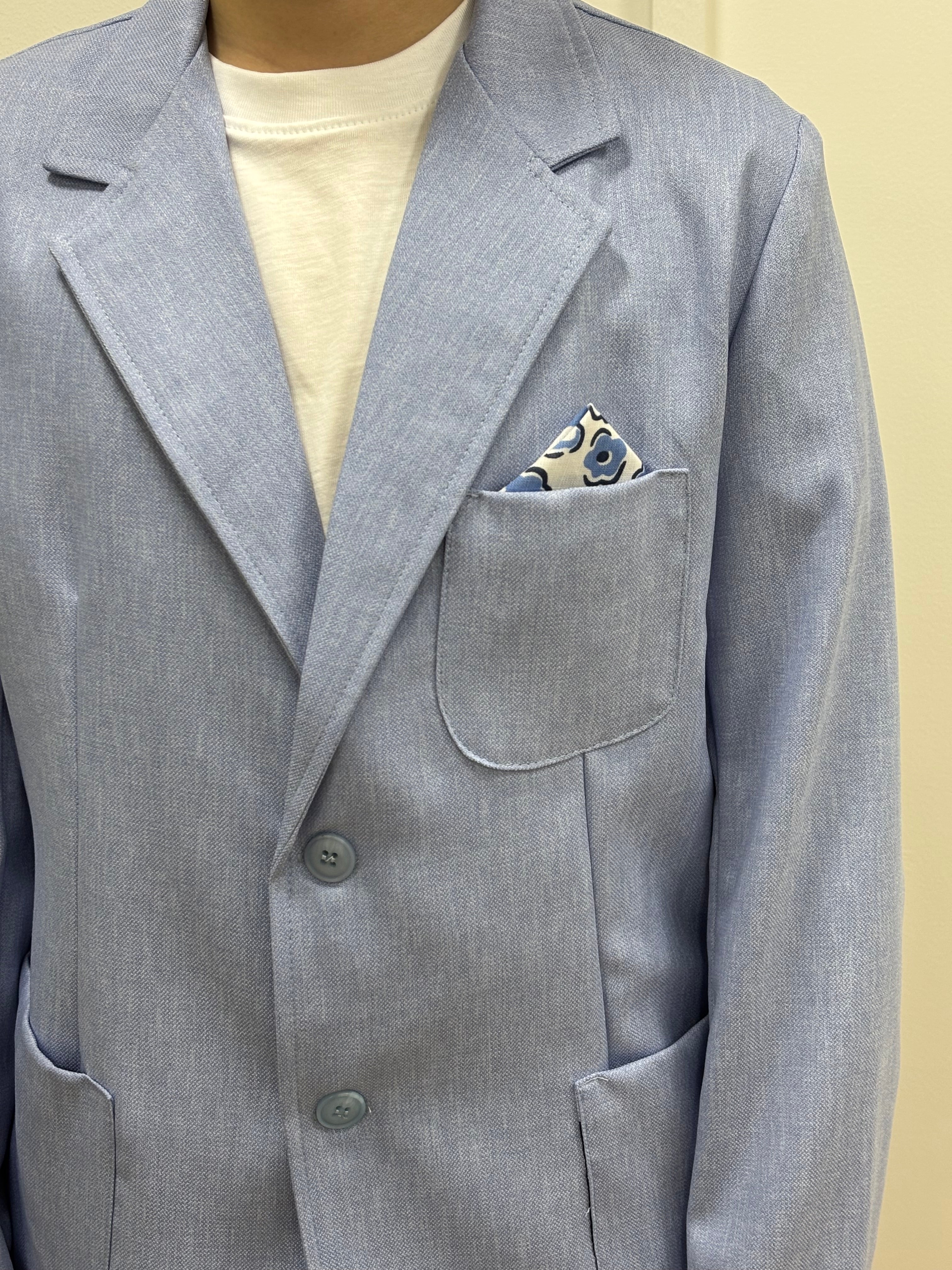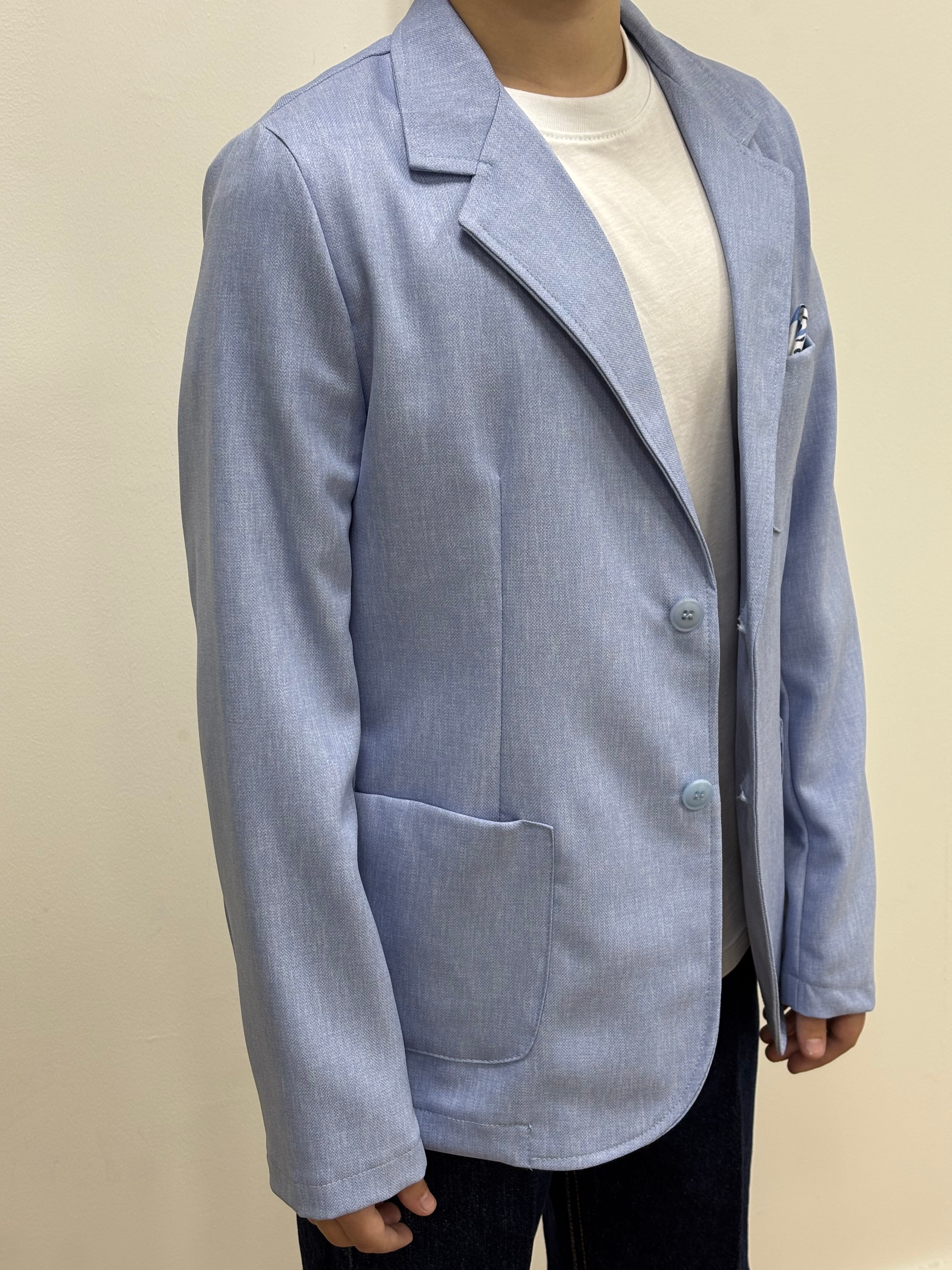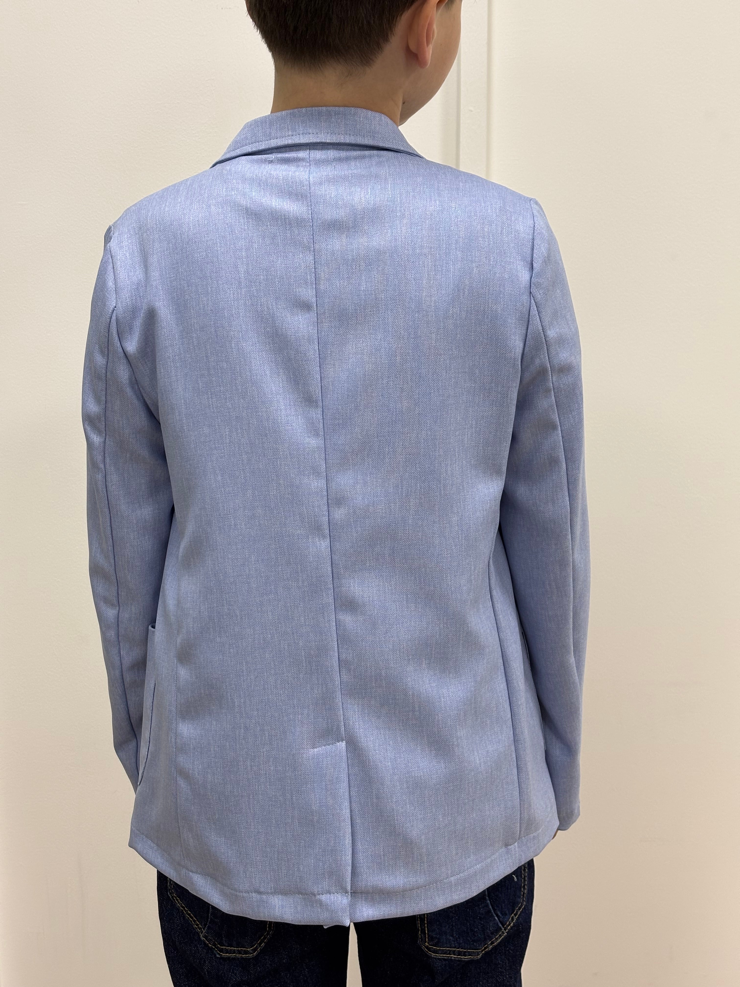 Camicia Bimbo Lino Collo Coreano Blu Bimbo