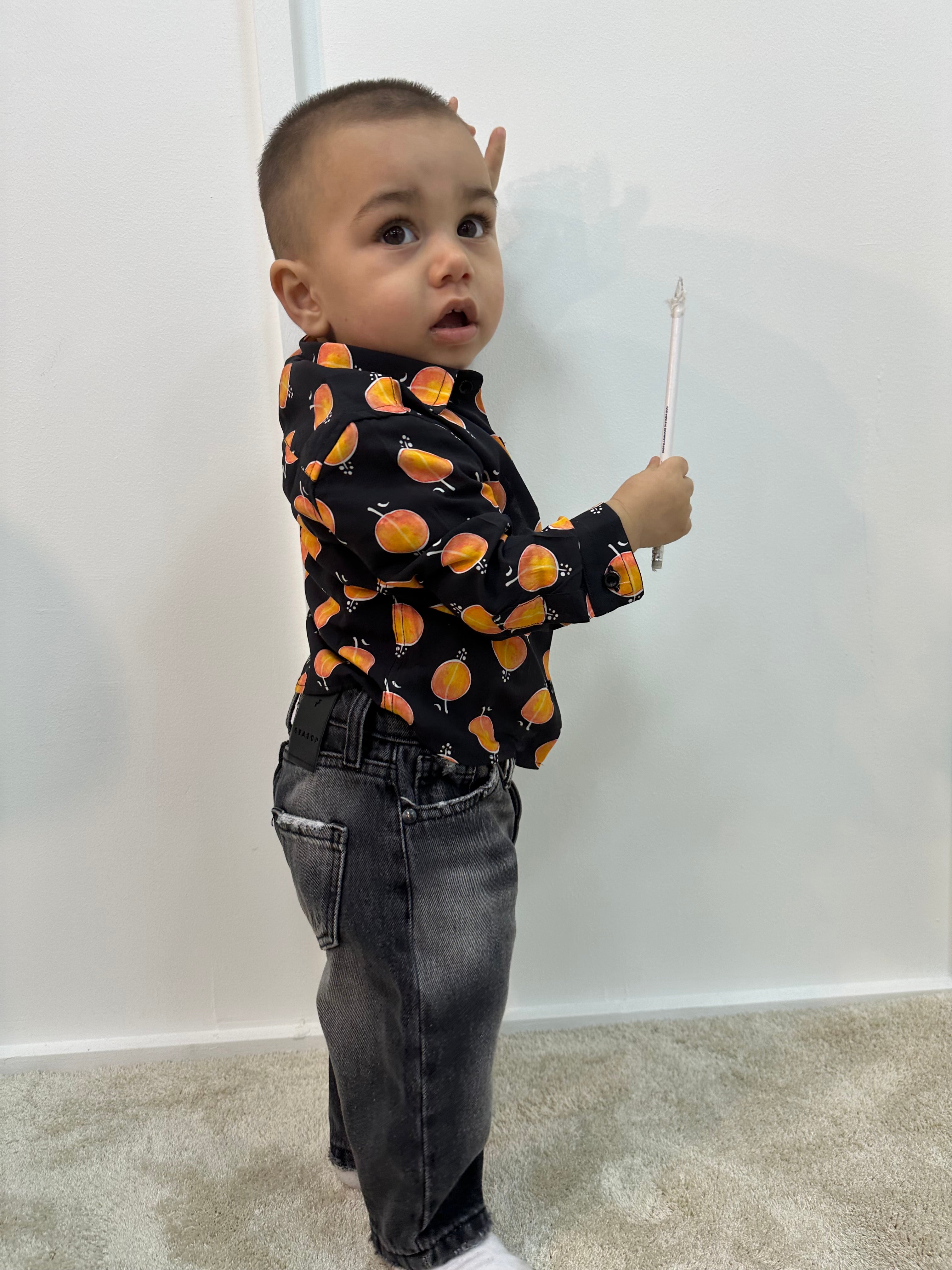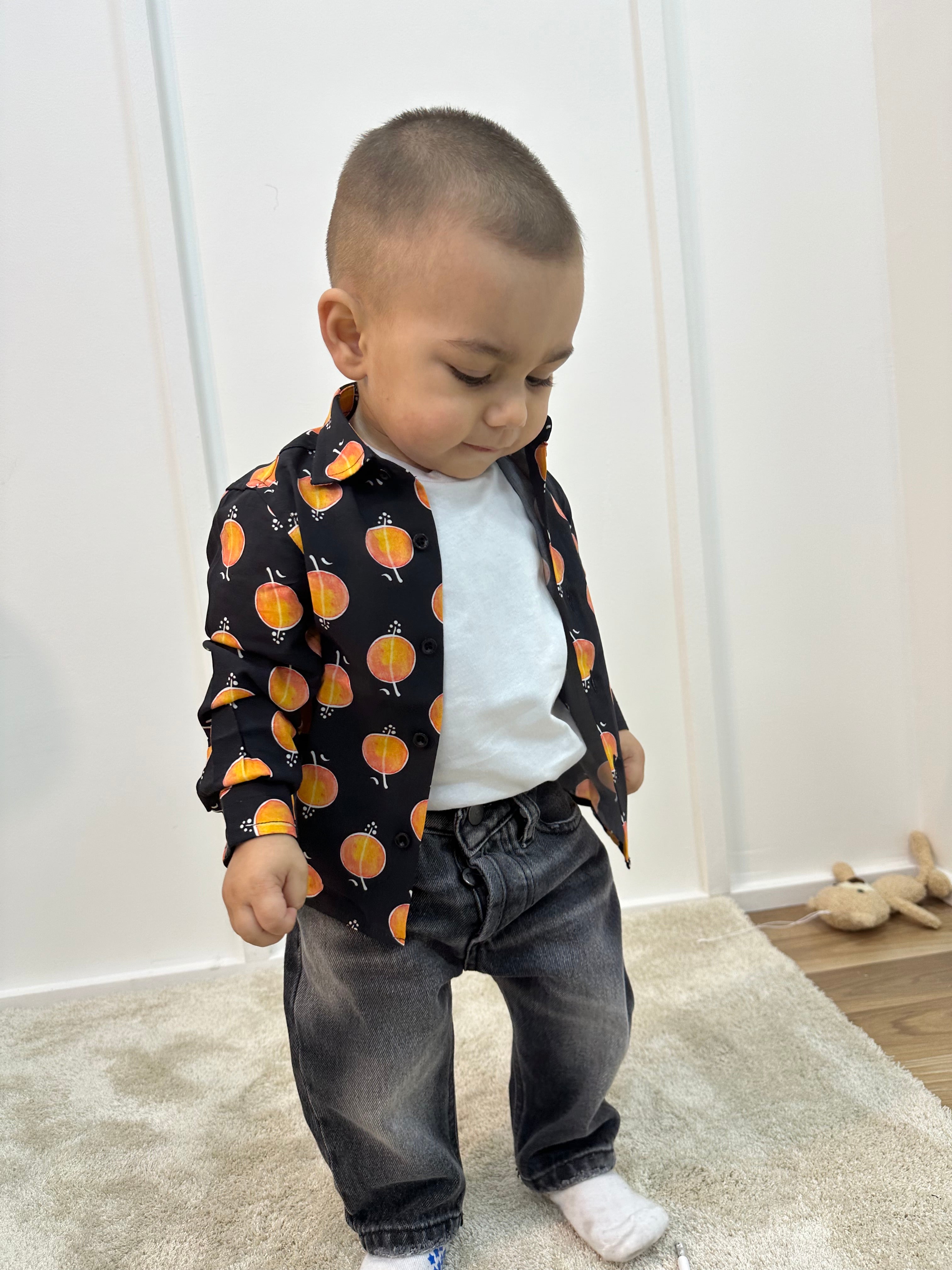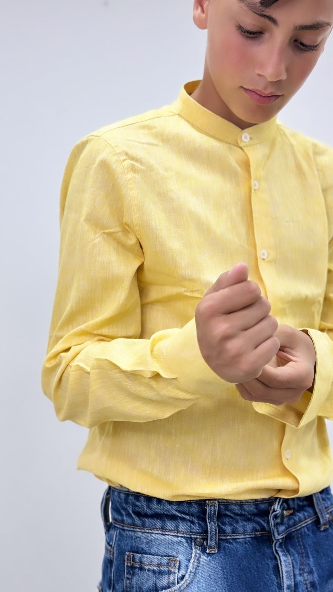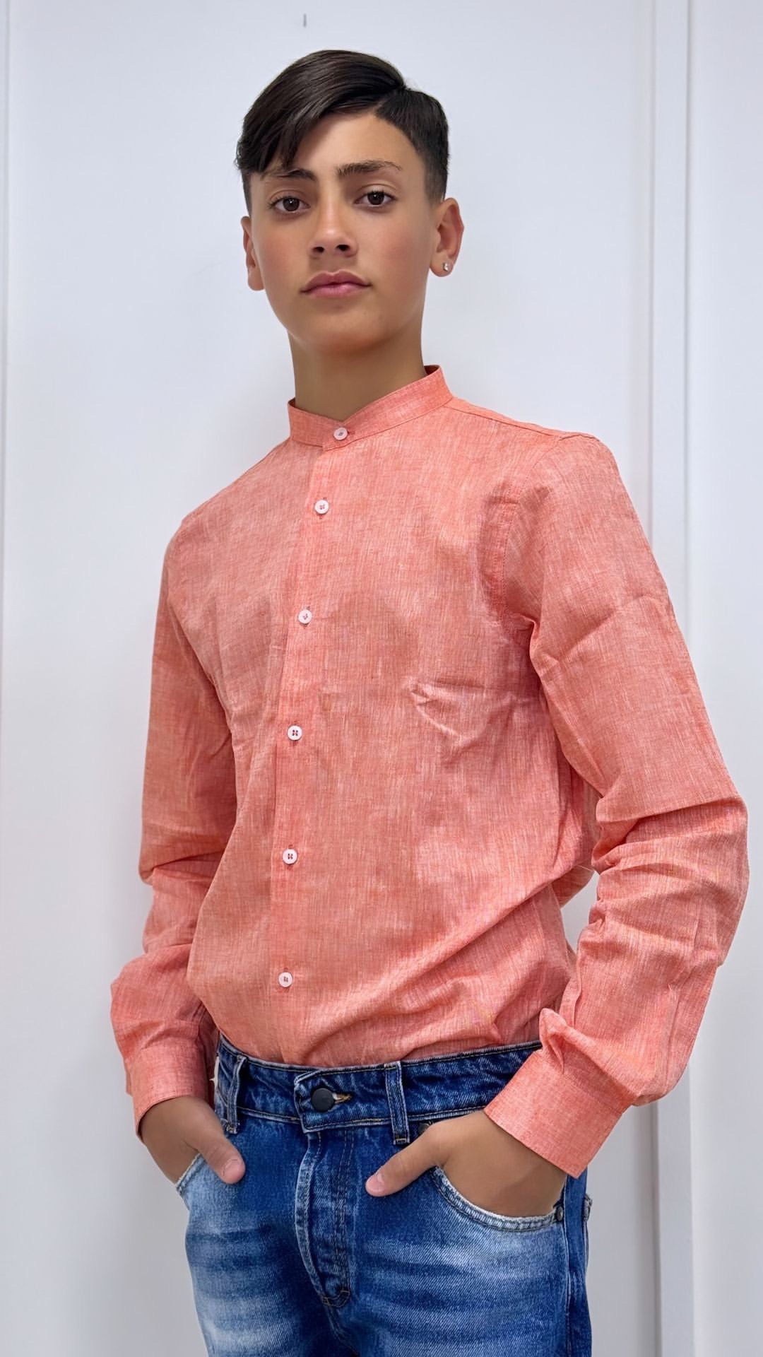Camicia Bimbo Lino Collo Coreano Arancione Bimbo