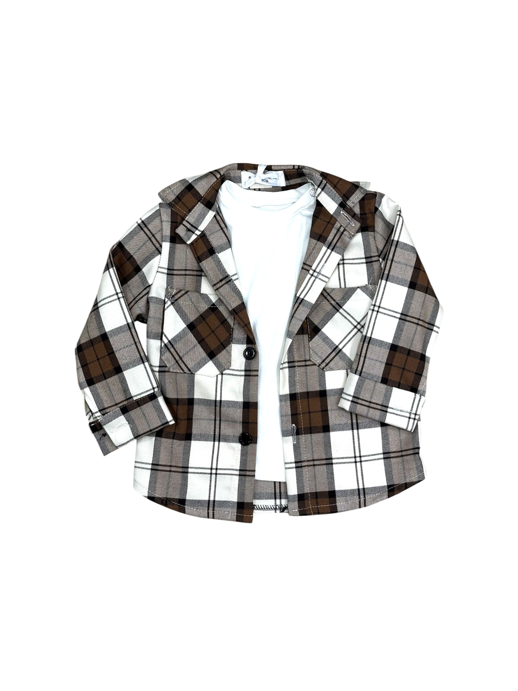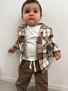 Camicia Neonato a Quadri Marrone Con T-Shirt