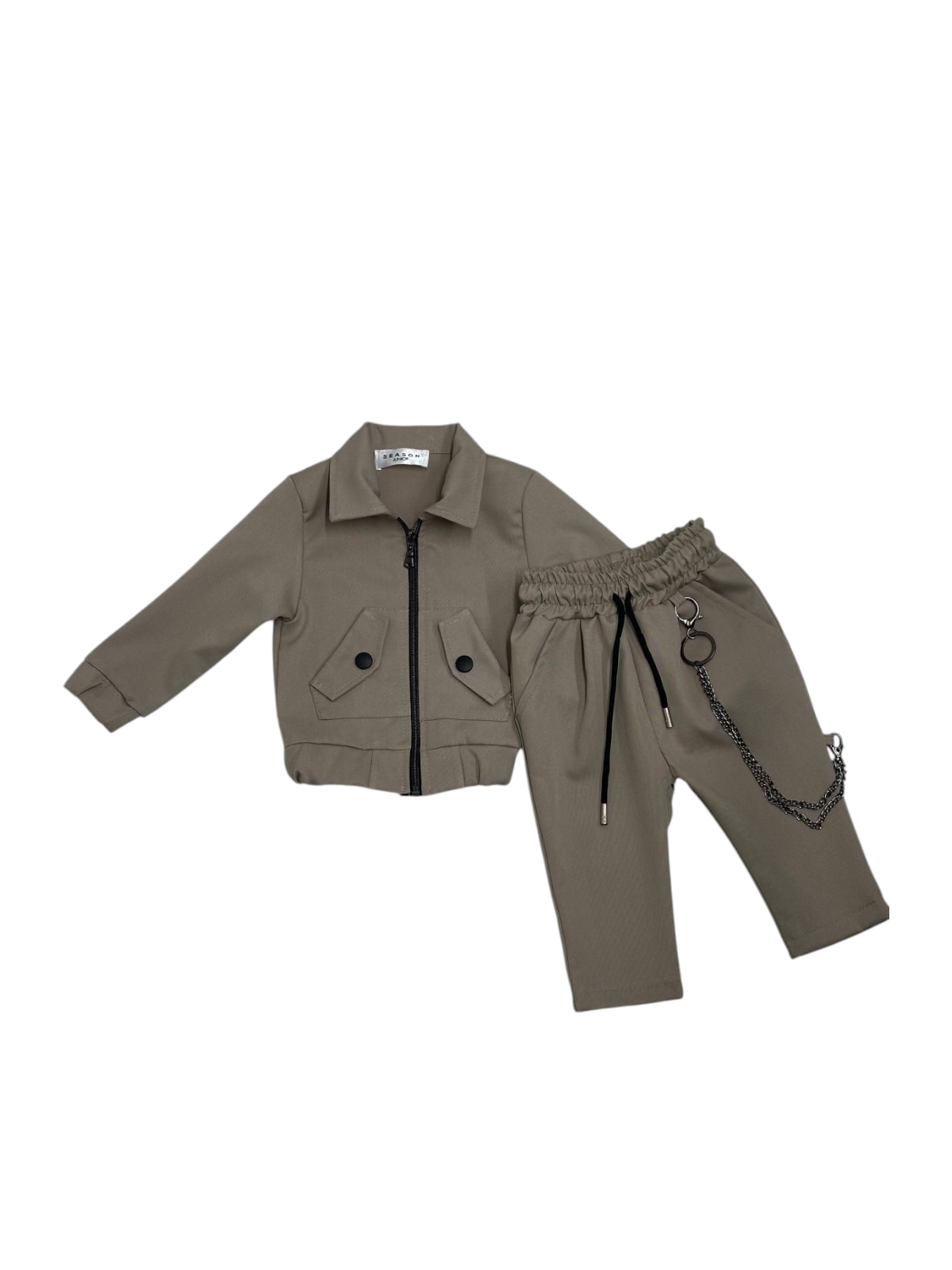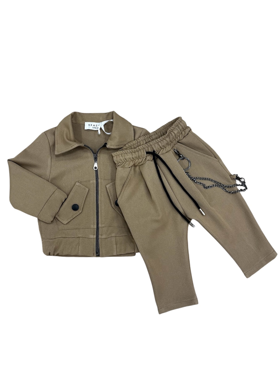 Il Coordinato Los Angeles è perfetto per i bimbi dinamici. Il pantalone con molla in vita offre comfort e libertà di movimento, mentre la catenina aggiunge un tocco di allegria stilosa. Il giacchettino, dotato di zip, tasche laterali e bottoncini, è realizzato in morbido tessuto elastico di poliviscosa, ideale per seguire ogni loro piccolo movimento con semplicità e stile. Un outfit pratico e divertente per i più piccoli esploratori!