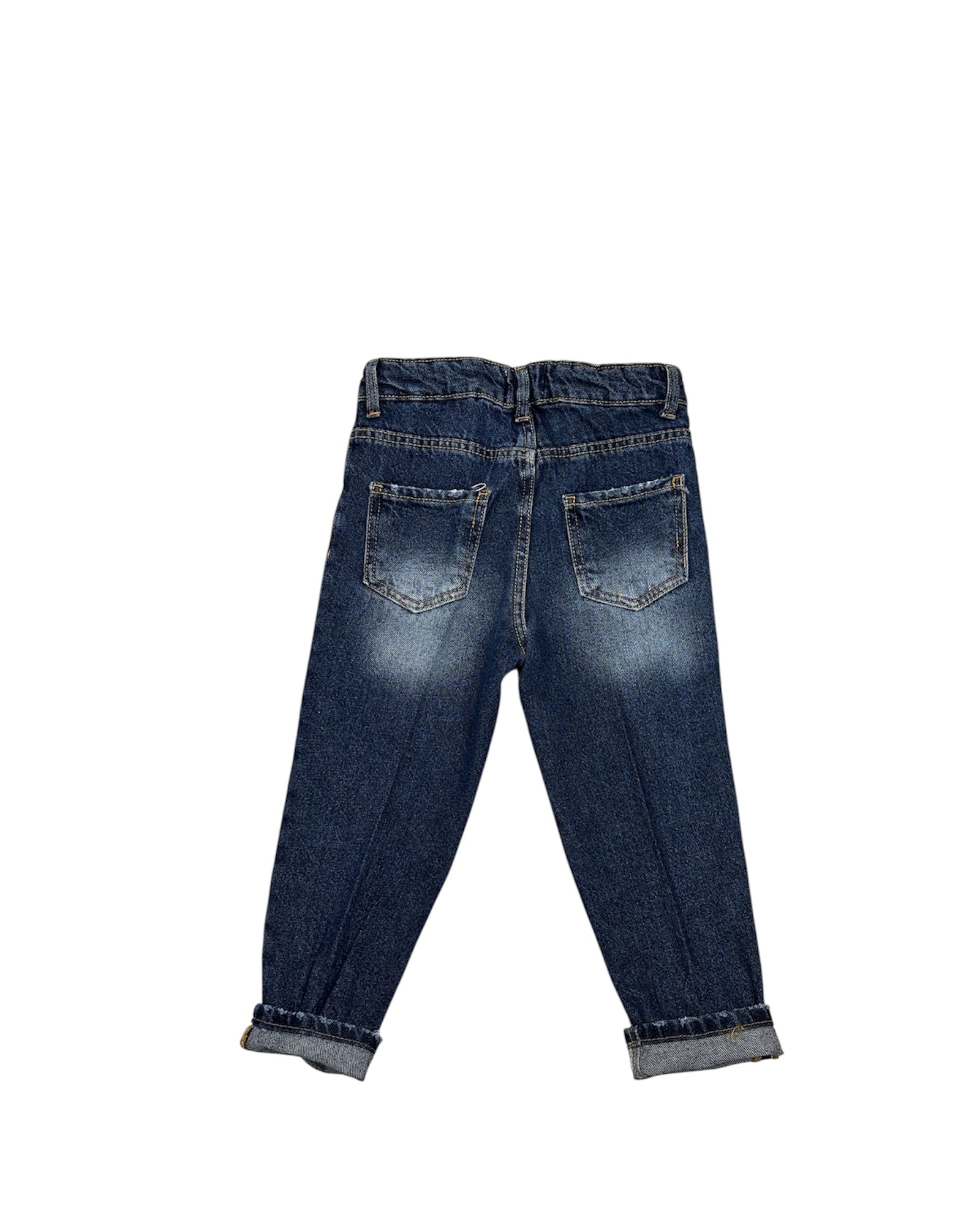 I Jeans Blu V102 sono realizzati in un tessuto morbido che coccola la pelle del tuo bambino. Le piccole abrasioni aggiungono un tocco vivace e divertente, munito di tasche anteriori e posteriori con bottoncini alla chiusura rendono ogni movimento più speciale. Il risvoltino di 3 cm completa il look con un pizzico di allegria, adattandosi perfettamente alla vestibilità comoda e fresca ideale per ogni piccola avventura!