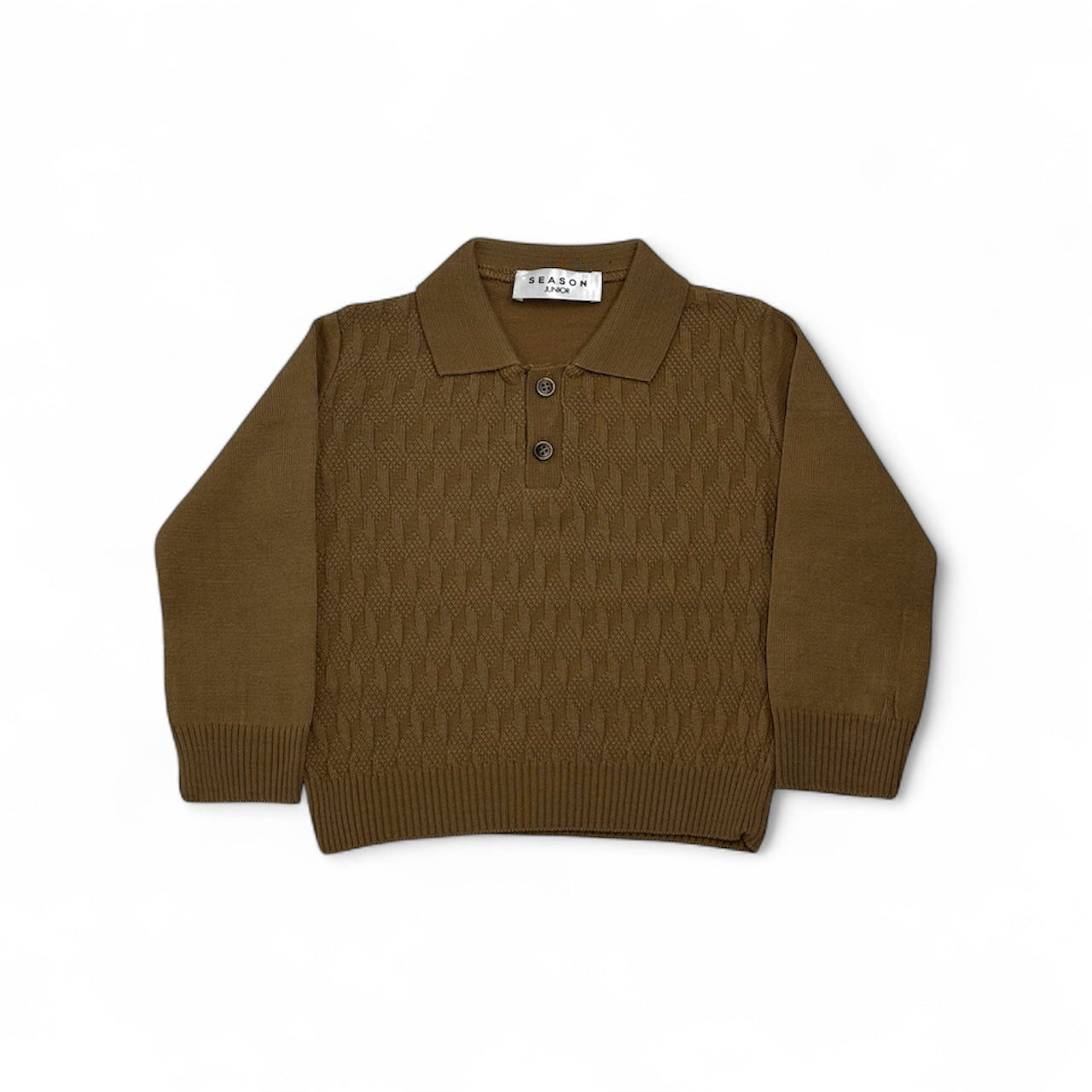Questa polo in maglia unisce morbidezza e stile grazie al mix di acrilico e lana. Le maniche lunghe e i bottoni effetto legno con abbottonatura centrale dal design particolare la rendono perfetta per ogni occasione. Un capo comodo e divertente, pensato per accompagnare con allegria ogni avventura del tuo piccolo.
